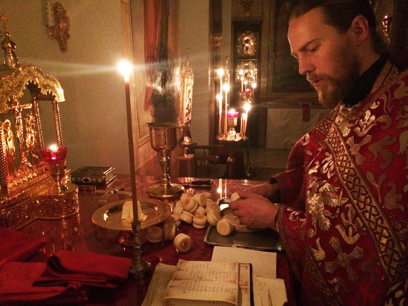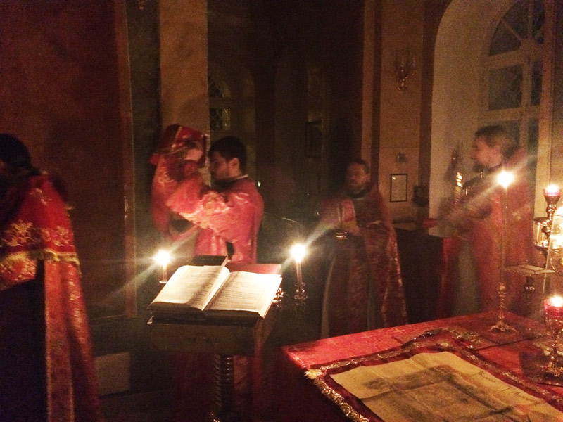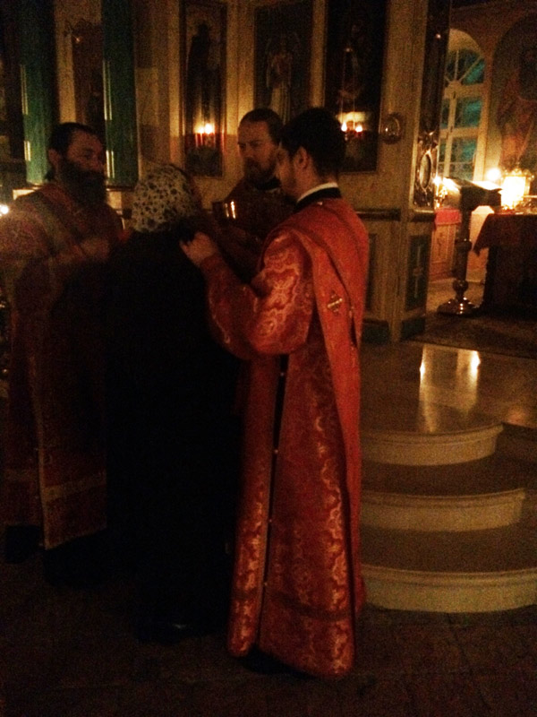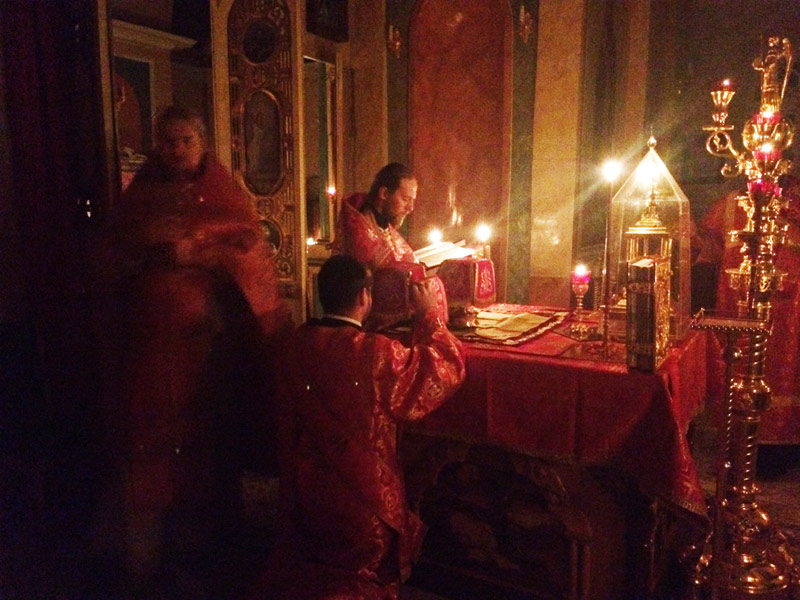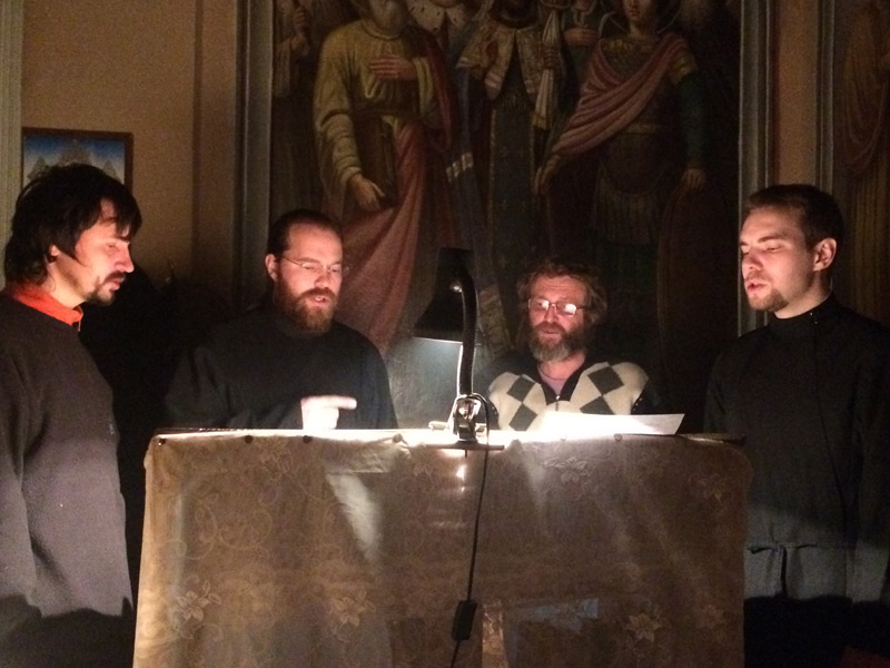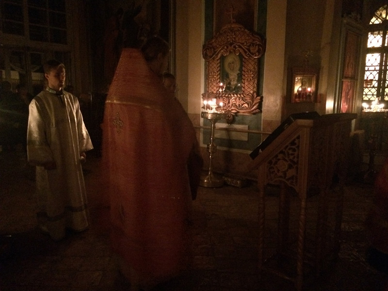 Ночные Утреню и Литургию совершили: клирик храма иерей Симеон Худяков, иерей Сергий Барыкин, настоятель храма Благовещения Пресвятой Богородицы города Козельска, диакон Евгений Васильев и диакон Валерий Волков. За богослужением пел мужской хор храма под руководством диакона Тихона Худякова.