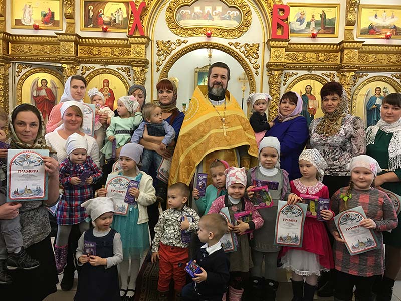По сложившейся традиции юные прихожане прославляли святого угодника Божия и из рук батюшки получили сладкие и памятные подарки. Маленькие прихожане принявшие участие в конкурсе детского творчества Калужской митрополии посвященному празднику Рождества Христова, получили грамоты за подписью митрополита Калужского и Боровского Климента.