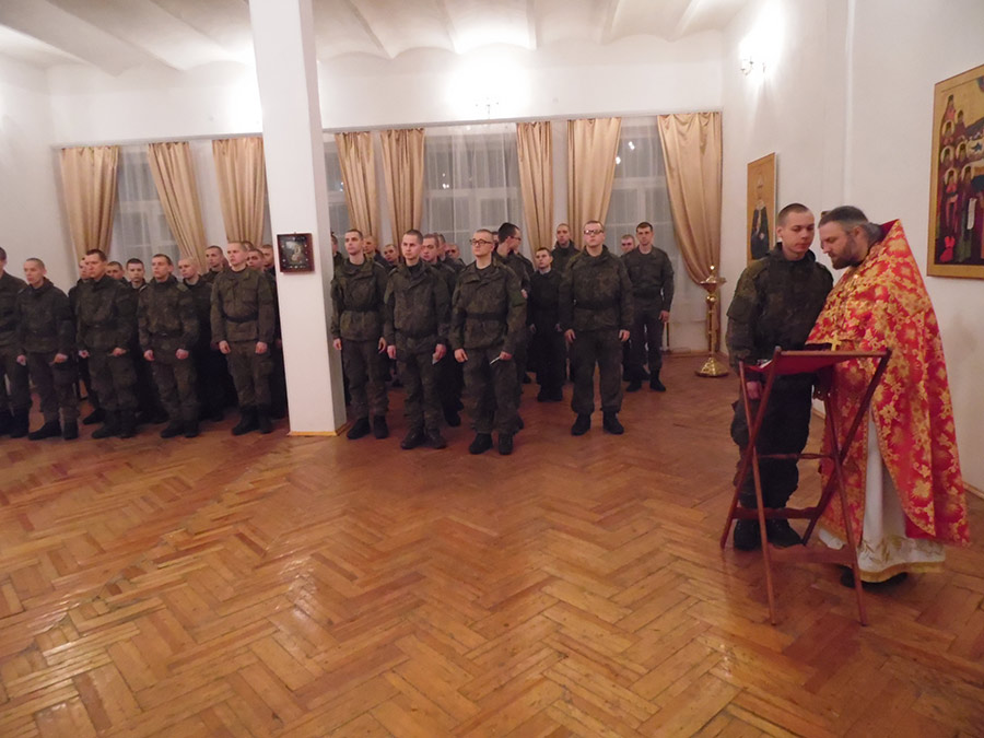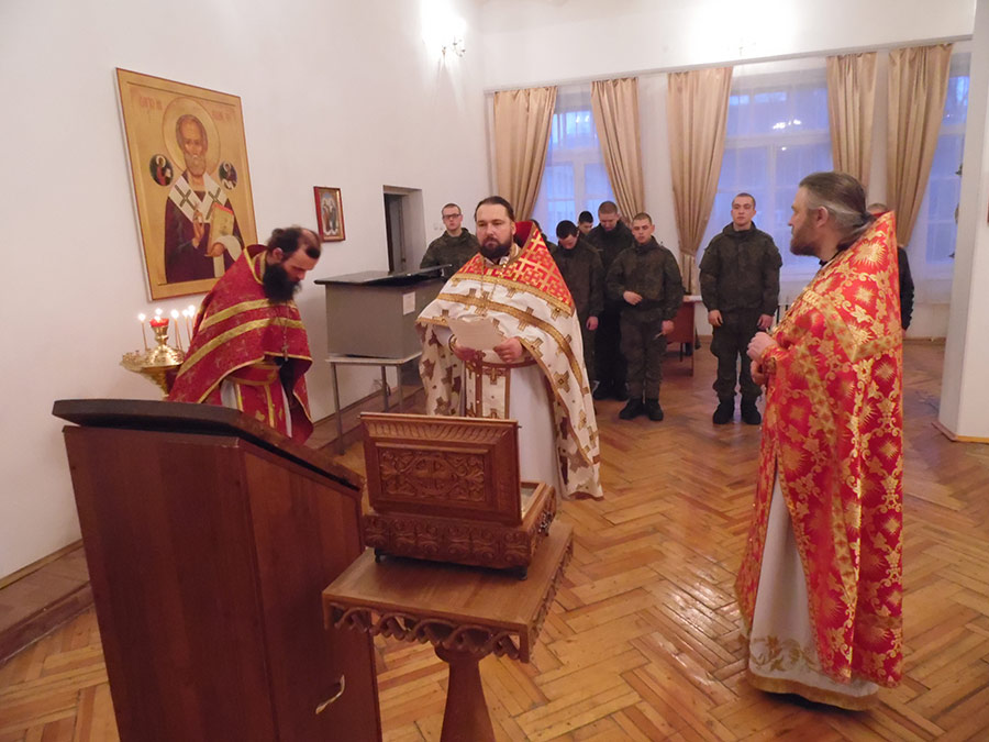 17 декабря в день памяти святой великомученицы Варвары  благочинный Козельского округа протоиерей Владимир Бахаев возглавил Божественную литургию на территории в/ч 54055 г. Козельска. Ему сослужили иерей Николай Кузнецов и иерей Сергий Дрозд.