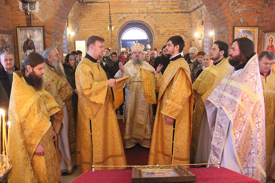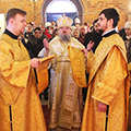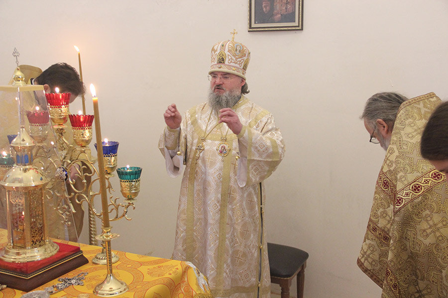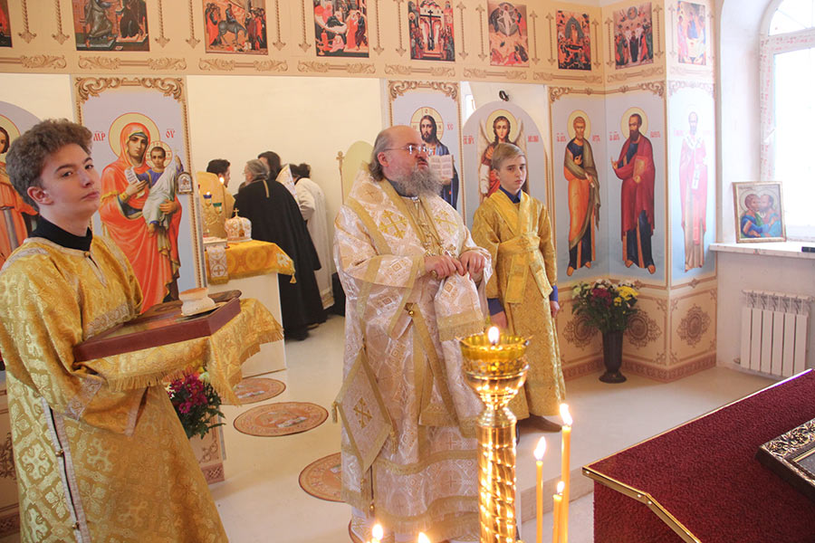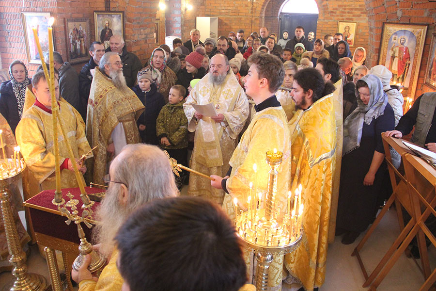 Архипастырю сослужили: протоиерей Алексий Жиганов, протоиерей Антоний Хатунцев, иерей Алексий Ефименков – благочинный округа, иерей Николай Безручкин, иерей Георгий Краснов – настоятель храма, диакон Евгений Ковригин, диакон Евгений Васильев и иеродиакон Виталий (Павленко).