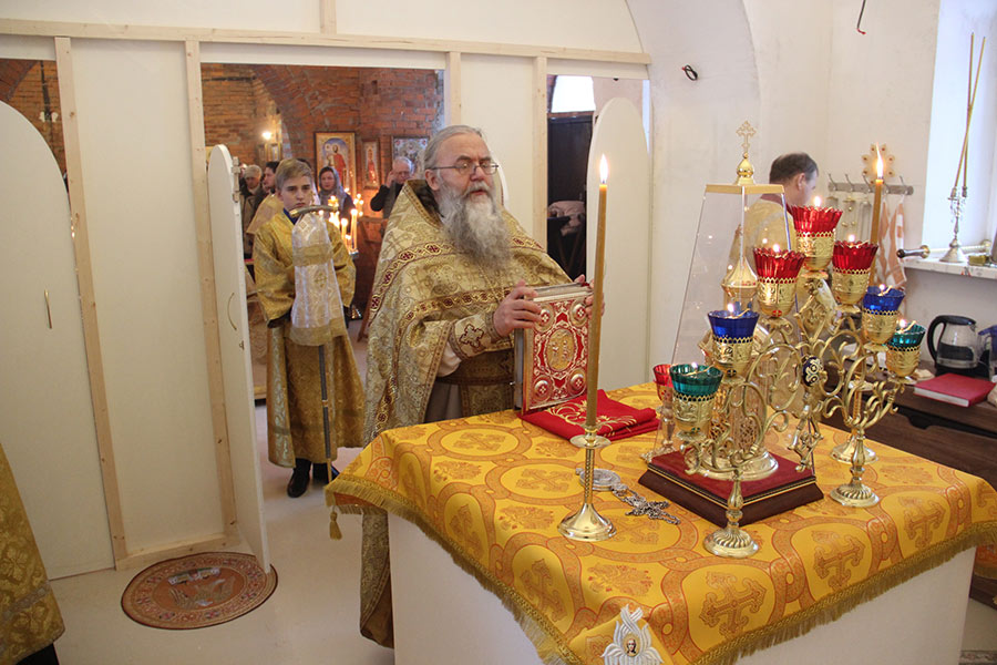 19 декабря в день памяти святителя Николая архиепископа Мир Ликийских, епископ Козельский и Людиновский Никита возглавил чин малого освящения храма и первую Божественную литургию в строящемся храме святых апостолов Петра и Павла села Овсорок Жиздринского района.