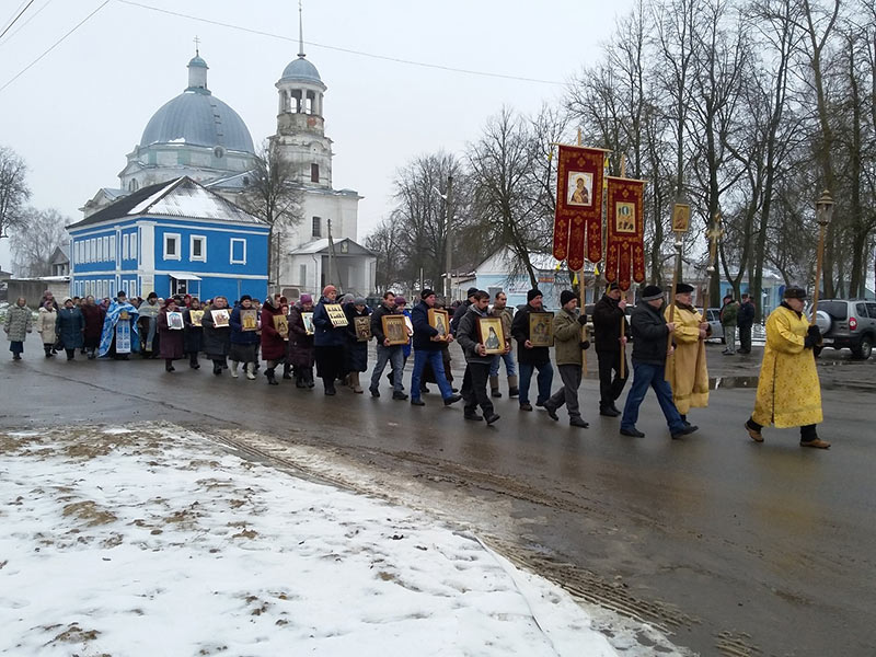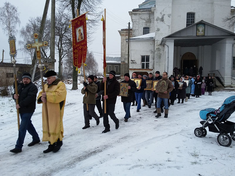 В этом году, после Божественной литургии, около 50 человек прошло с песнопениями по селу к разрушенному Храму. Здесь, благочинный округа, протоиерей Максим Садовников, настоятель Храма Воскресения Христова с. Ульяново, в со служении клириков благочиния, иерея Алексея Сорокина и иерея Стахия Гайсина, совершили молебен перед образом Божией Матери «Знамение».