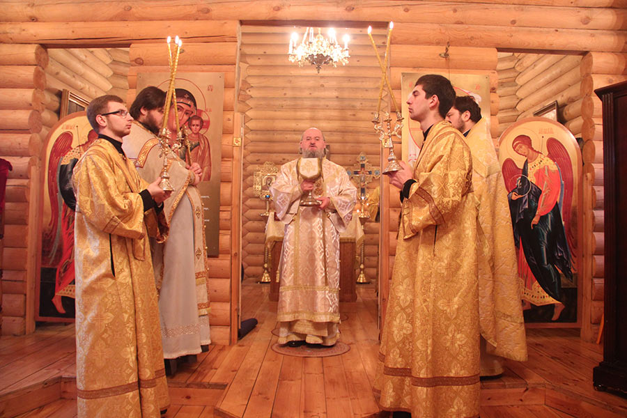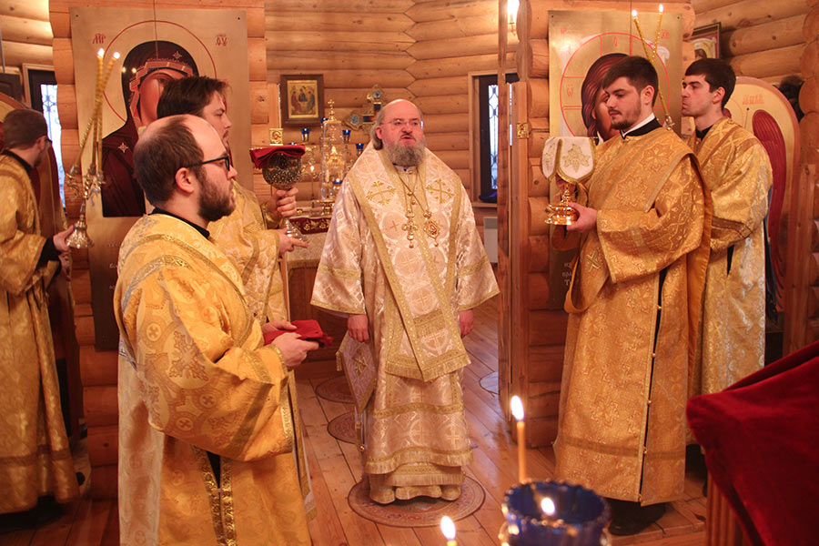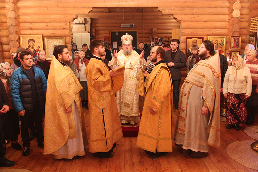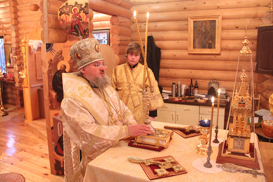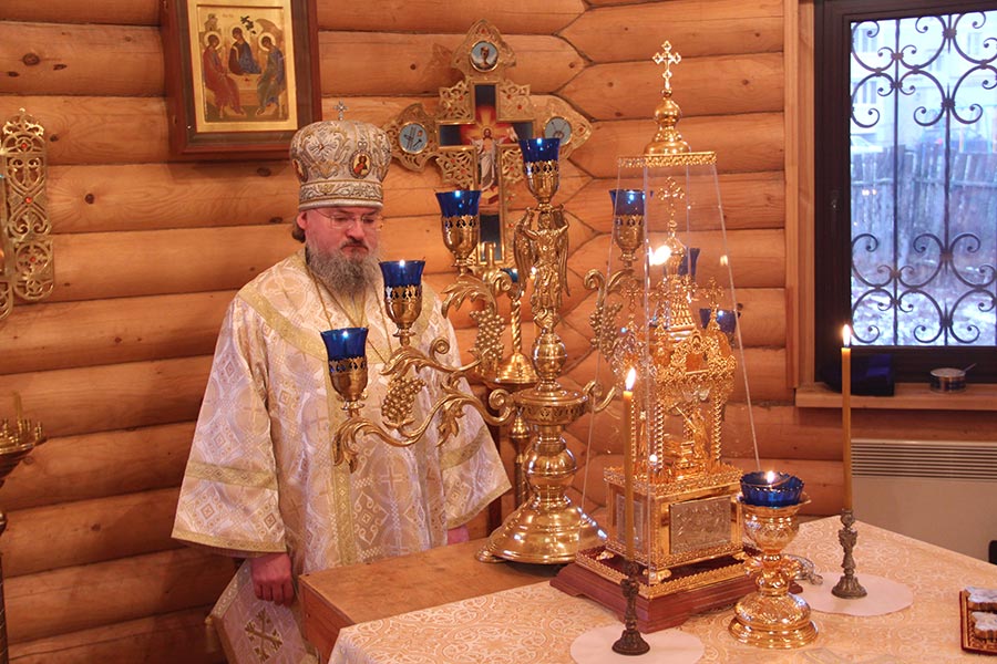 Архипастырю сослужили: протоиерей Антоний Хатунцев, иерей Кирилл Хланта – настоятель храма, диакон Евгений Васильев и диакон Илья Потемкин. По отпусте литургии священнослужители совершили молебное пение на начало нового года, а затем владыка обратился к прихожанам с проповедью.
