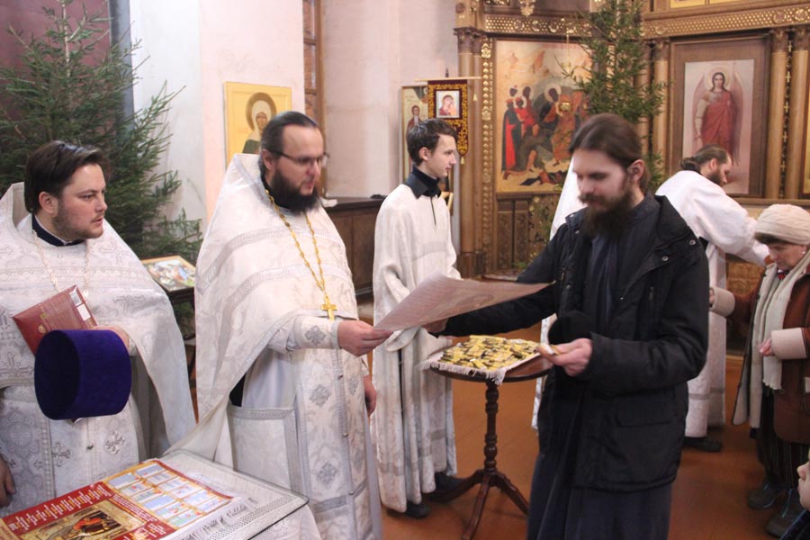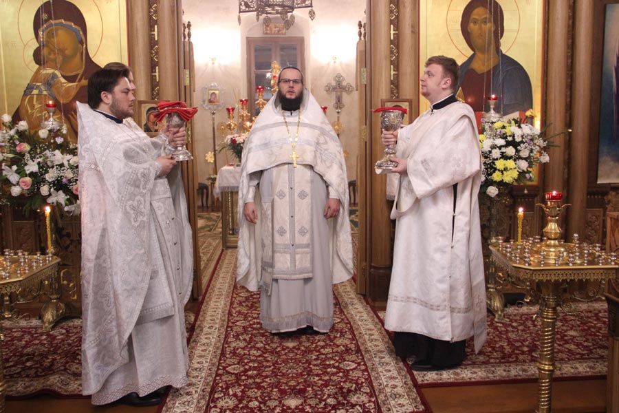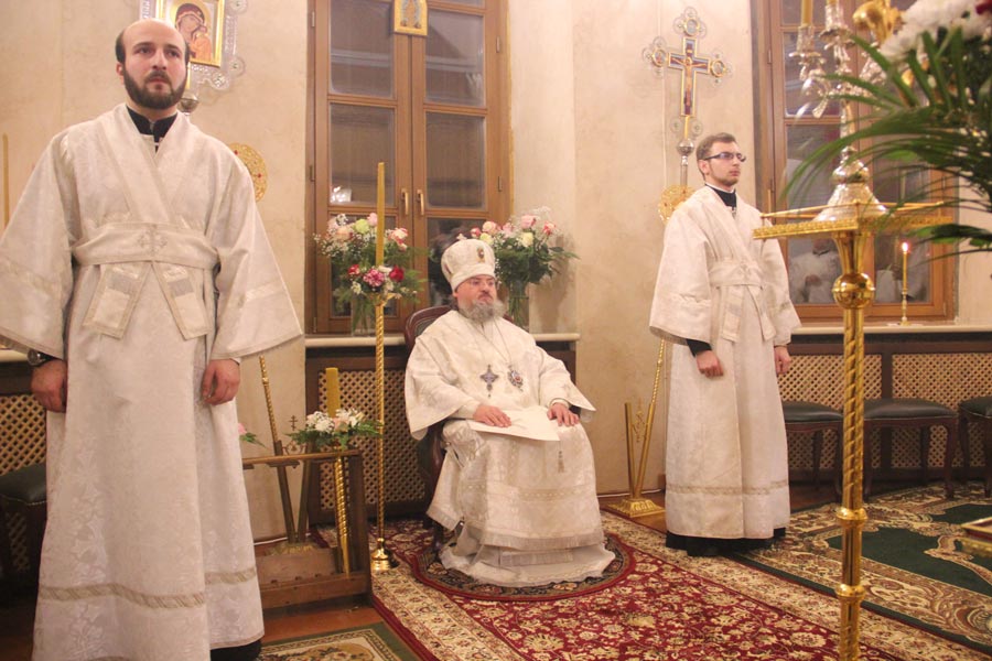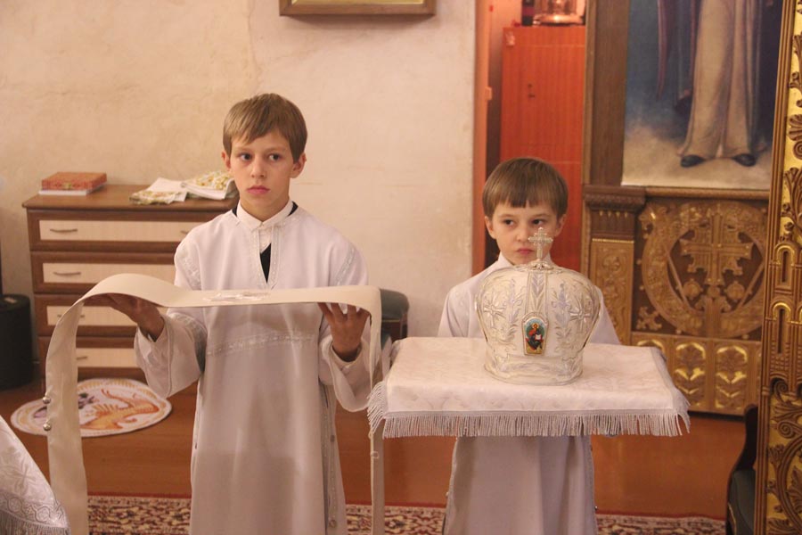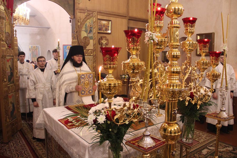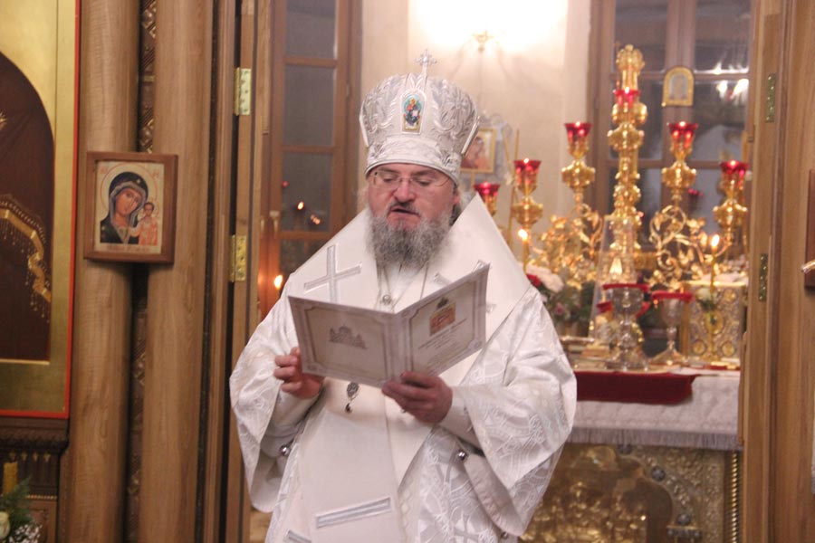 Его Преосвященству сослужили: настоятель храма иеромонах Паисий (Курмаз), протоиерей Антоний Хатунцев, иерей Елисей Тимофеев, диакон Евгений Ковригин, диакон Димитрий Лутков и иеродиакон Виталий (Павленко).