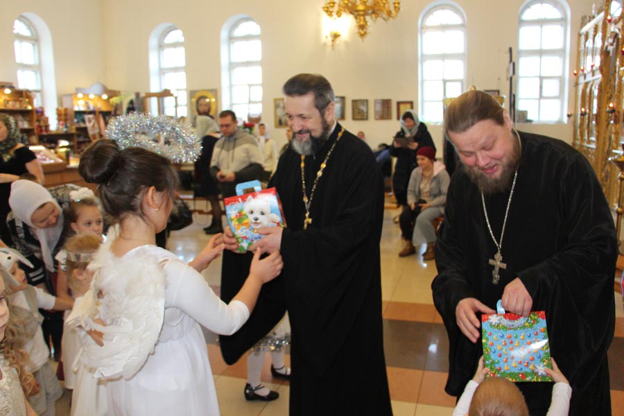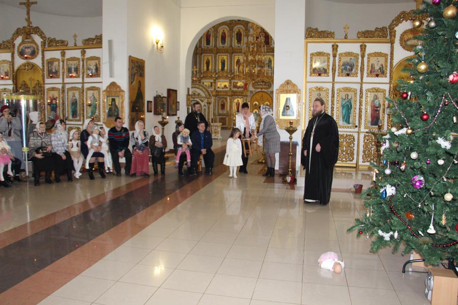 На службе присутствовали маленькие прихожане. Почти все дети причастились Святых Христовых Тайн. Настоятель поздравил молящихся с праздником и рассказал о значении праздника Рождества Христова. Иеромонах Никон произнес вступительное слово на открытии Рождественской елки для детей.