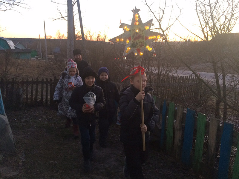 В конце праздника, воспитанники Воскресной школы, вместе с клириком храма диаконом Тихоном Худяковым, посетили нуждающихся инвалидов, старейших прихожан храма и поздравили их с наступившим праздником вручив им подарки и спев колядки.