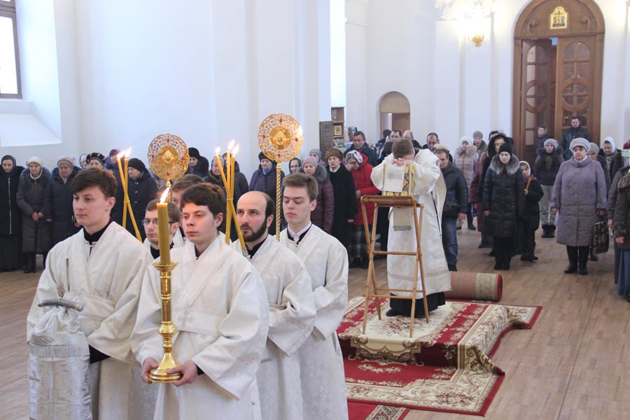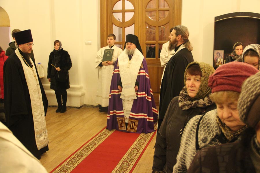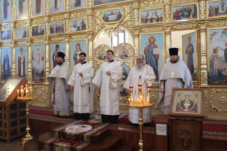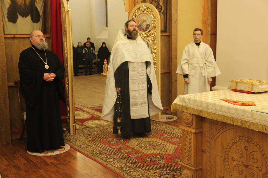 Его Преосвященству сослужили: протоиерей Антоний Хатунцев, иерей Дионисий Куваев – настоятель храма, иерей Алексий Боков, диакон Евгений Ковригин, диакон Евгений Васильев и иеродиакон Виталий (Павленко).