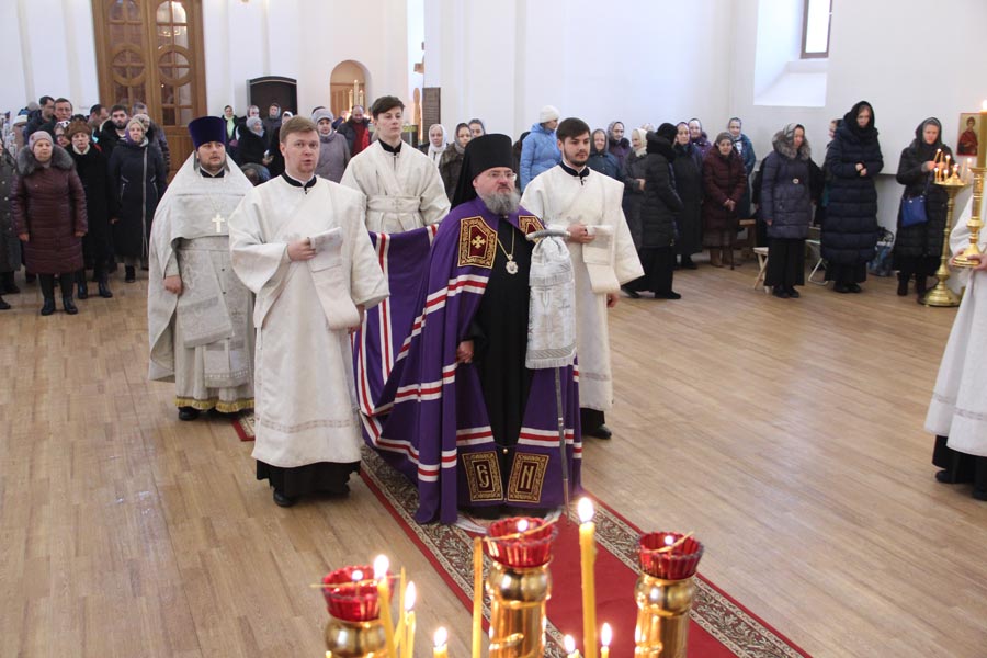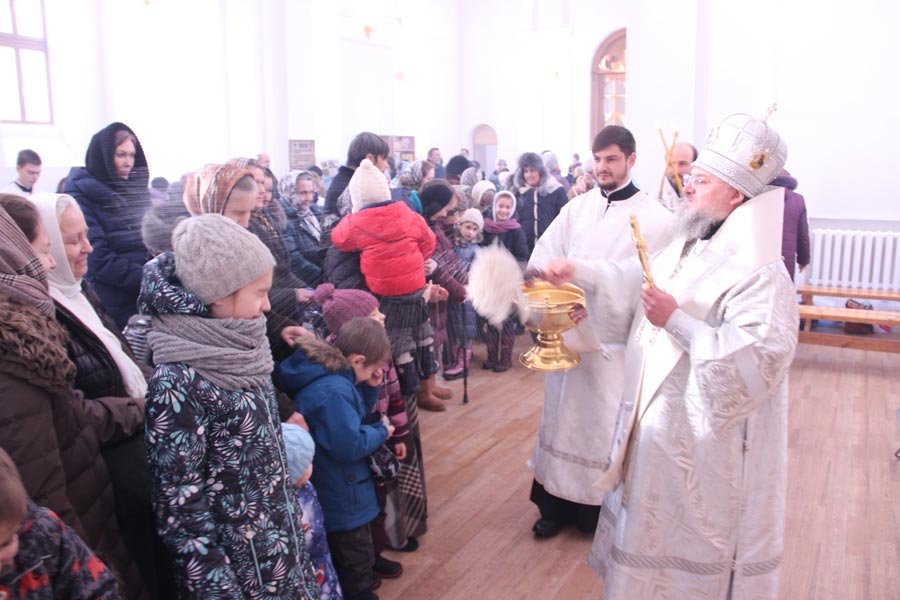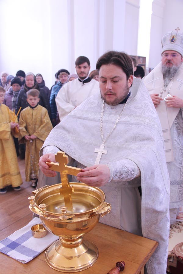 В праздник Крещения Господня управляющий Козельской епархией епископ Козельский и Людиновский Никита совершил всенощное бдение и Божественную литургию в Богоявленском храме микрорайона Мехзавод города Козельска.
