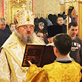 Архипастырю сослужили: настоятель храма – протоиерей Алексий Пелевин, протоиерей Антоний Хатунцев, протодиакон Сергий Комаров, диакон Евгений Ковригин и диакон Вадим Роговцев. По отпусте литургии священнослужители совершили славление праздника Богоявления, а затем архипастырь обратился к богомольцам с проповедью.