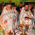 Ему сослужил клирик храма протоиерей Димитрий Губаль За Литургией настоятель храма поздравил всех прихожан с праздником и раскрыл духовный смысл Богоявления. После заамвонной молитвы было совершено Великое освящение воды.