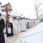 Освящение креста на старой дороге к паромной переправе монастыря Оптина Пустынь. 25.02.2018г.