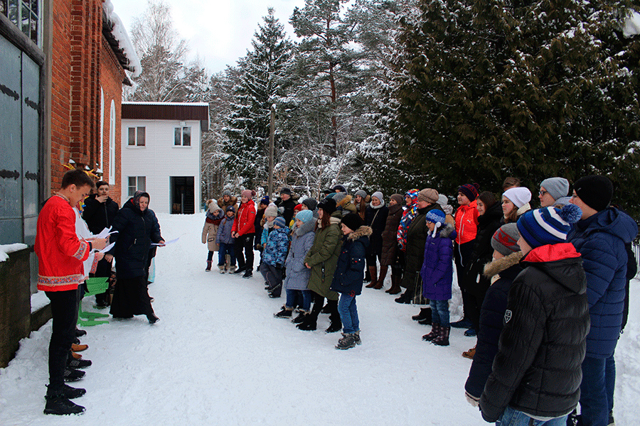Преподаватель школы с учениками подготовили увлекательную программу проводов Зимы и встречи Весны. На площадке у стен храма дети участвовали в веселых играх, конкурсах и забавах. Они порадовали зрителей задорными играми, хороводом, частушками, песнями. Преподаватель школы Клячина Т.И. рассказала всем присутствующим на празднике о традиции просить прощения, которая дошла до нас с глубокой древности. Татьяна Ивановна попросила у всех прощение: «Прости меня!», и все ей отвечали: «Господь Вас простит, и мы Вас прощаем. И вы нас простите!». Таким образом, примирившись друг с другом, православные христиане начинают поприще Великого поста.