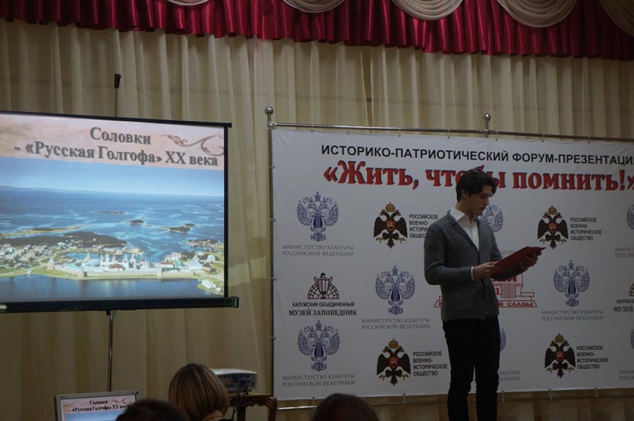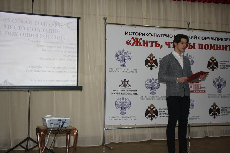 Продолжилось мероприятие рядом выступлений, посвященных подвигу новомучеников и исповедников Российских. Тема выступления Павла Черешнева, учащегося МКОУ «Средняя школа№1» «Русская Голгофа»: место страдания и покаяния России» говорит сама за себя.