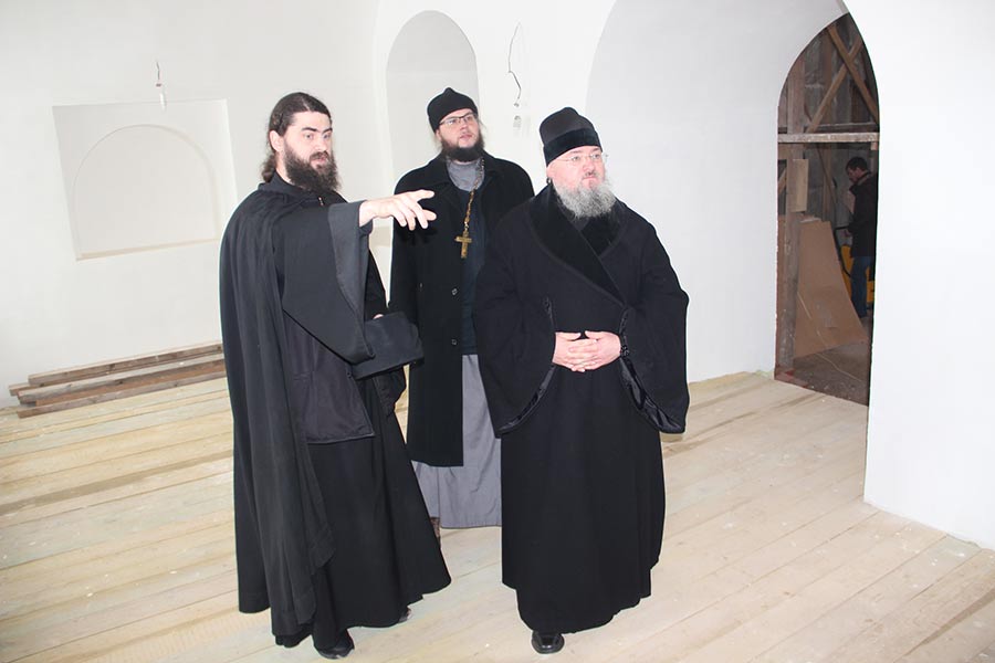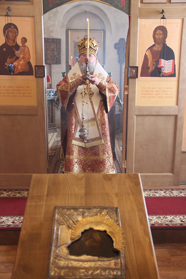 По заамвонной молитве священнослужители, в центре храма, пред иконой Иоанна Крестителя, совершили славление святого, а затем, вознеся молитву угоднику Божию, владыка обратился к богомольцам с архипастырским словом. По завершении богослужения владыка ознакомился с ходом реставрационных работ в храме.