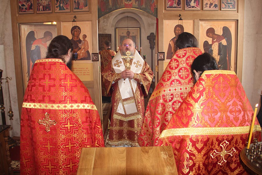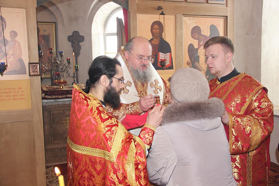 Арипастырю сослужили: иеромонах Паисий (Курмаз), иеромонах Вадим, иерей Максим Изопов – настоятель храма, диакон Евгений Ковригин и иеродиакон Виталий (Павленко).
