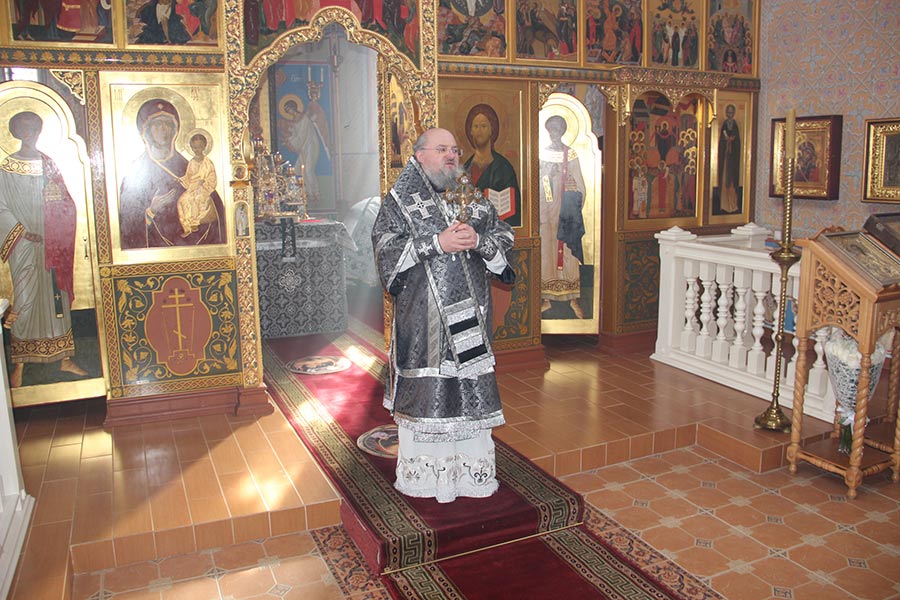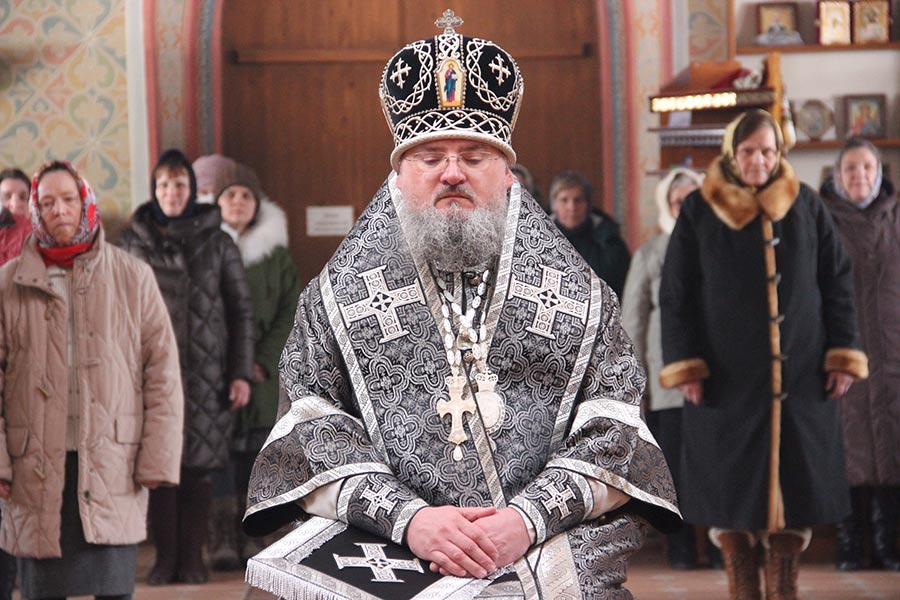 7 марта. Епископ Козельский и Людиновский Никита возглавил служение Литургии Преждеосвященных Даров в Покровском храме села Красное Хвастовичского района.