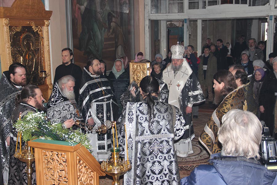 14 марта. Епископ Козельский и Людиновский Никита возглавил служение Божественной литургии Преждеосвященных Даров в храме Преображения Господня села Нижние Прыски Козельского района.