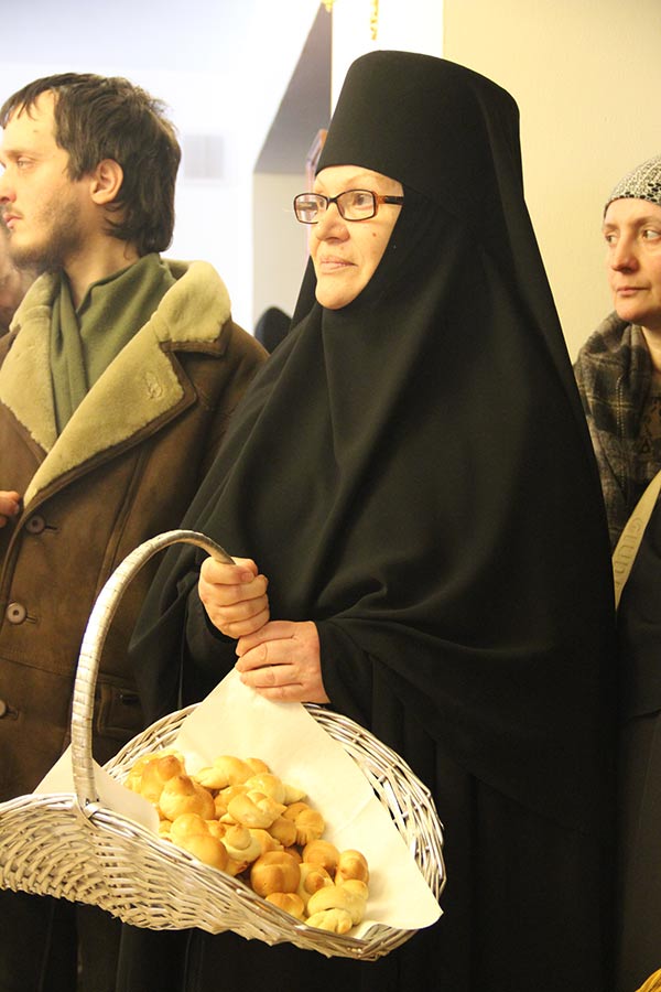 По отпусте литургии священнослужители совершили молебен святым мученикам. В конце богослужения, вознеся молитву страстотерпцам, владыка обратился к богомольцам с архипастырским словом, а монахини, сестры женской общины святых Жен Мироносиц в селе Клыково, преподнесли всем присутствовавшим за богослужением искусно выпеченных «жаворонков».