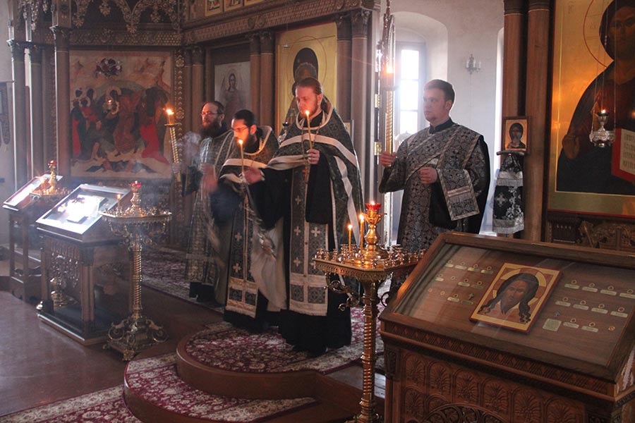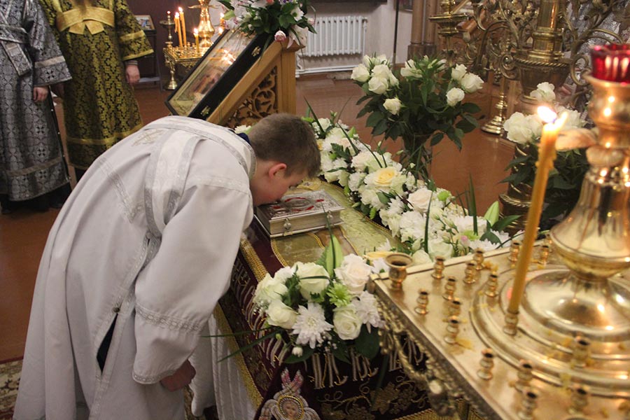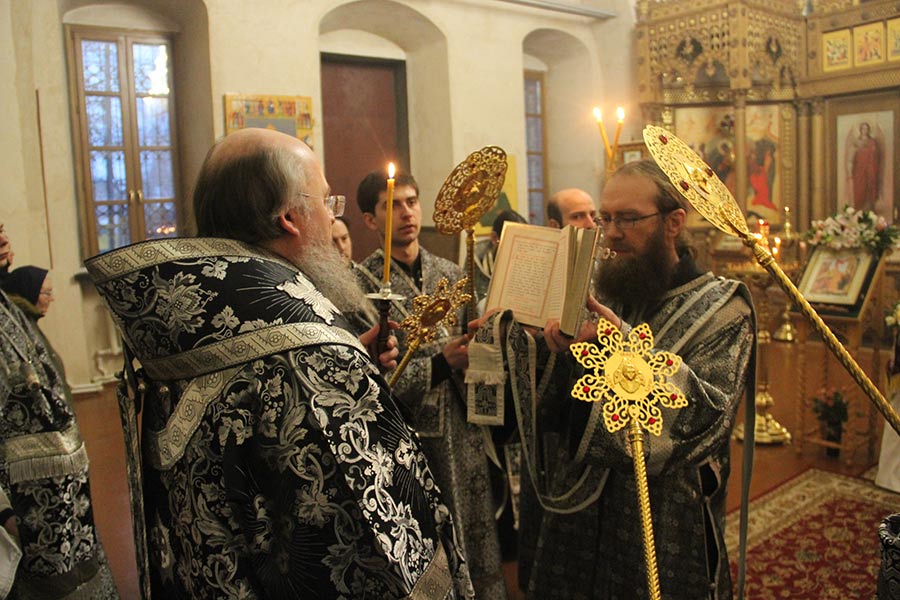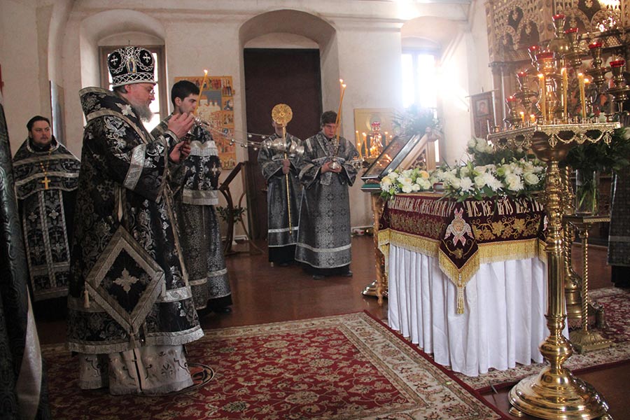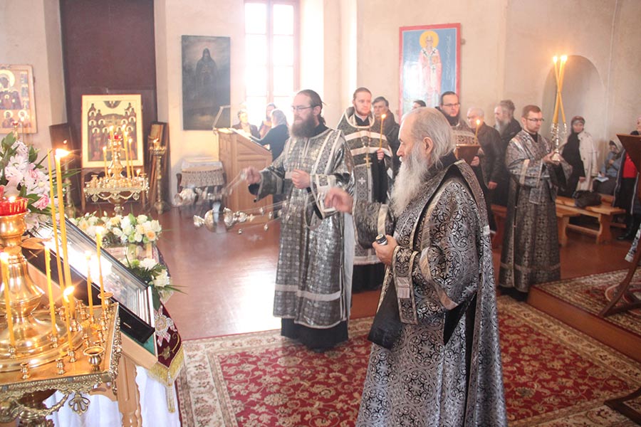 Архипастырю сослужили: настоятель собора иеромонах Паисий (Курмаз), протоиерей Антоний Хатунцев, иерей Елисей Тимофеев, иерей Максим Изопов, диакон Евгений Ковригин, диакон Димитрий Лутков и иеродиакон Виталий (Павленко).
