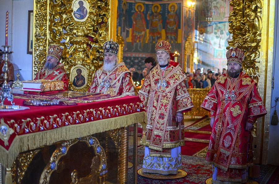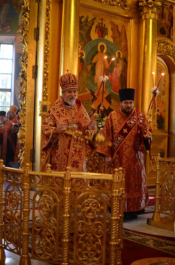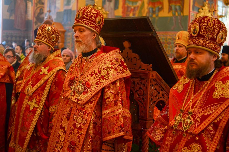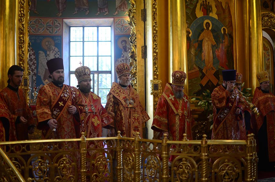 Его Высокопреосвященству сослужили: архиепископ Песоченский и Юхновский Максимилиан, епископ Козельский и Людиновский Никита, епископ Тарусский Серафим, духовенство Калужской, Козельской и Песоченской епархий.