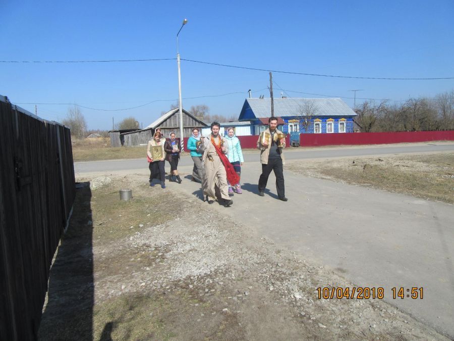 В каждом доме, где принимали, участников Крестного хода встречали с хлебом и солью. Далее все проходили в специально убранную комнату, торжественно читалось Пасхальное Евангелие и весь дом окроплялся святой водой.