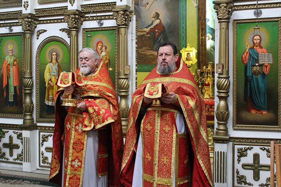 Настоятель храма протоиерей Василий Биляк произнёс тёплые слова поздравления в адрес всех присутствующих на богослужении женщин.