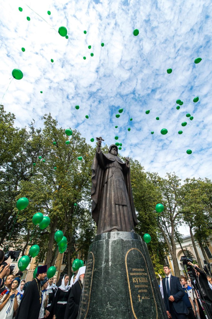 После Литургии, при многочисленном стечении народа, состоялось освящение памятника преп. сщмч. Кукше, просветителю вятичей, установленного около Свято-Троицкого кафедрального собора (на территории городского парка).