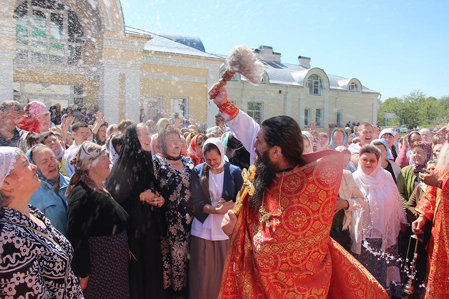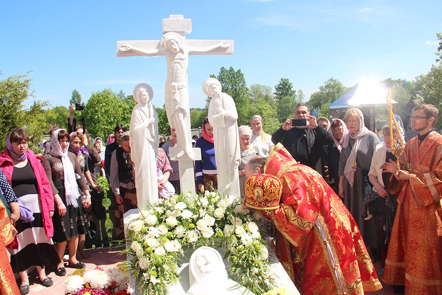 После отпуста литургии состоялся праздничный пасхальный крестный ход, а затем панихида на могиле блаженнопочившей старицы. В завершении богослужений владыка Никита обратился к участникам торжества с архипастырским словом.