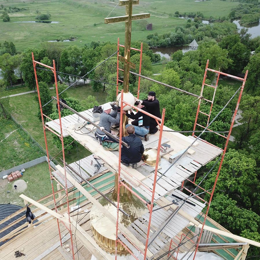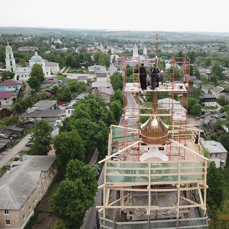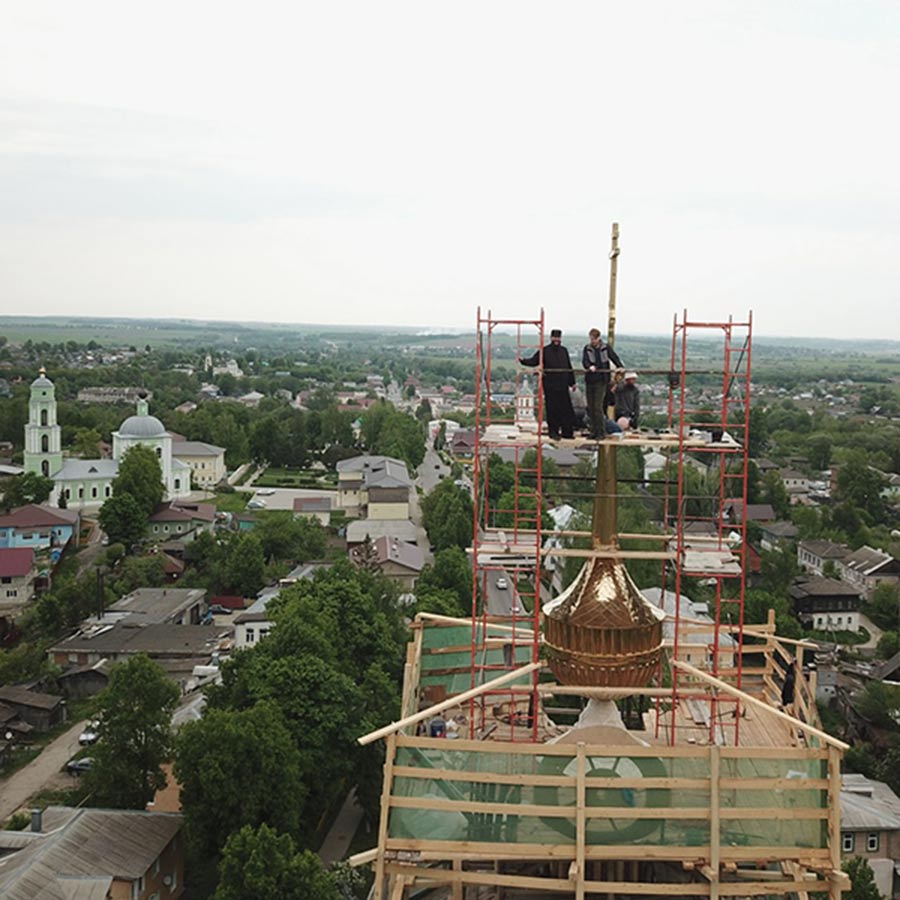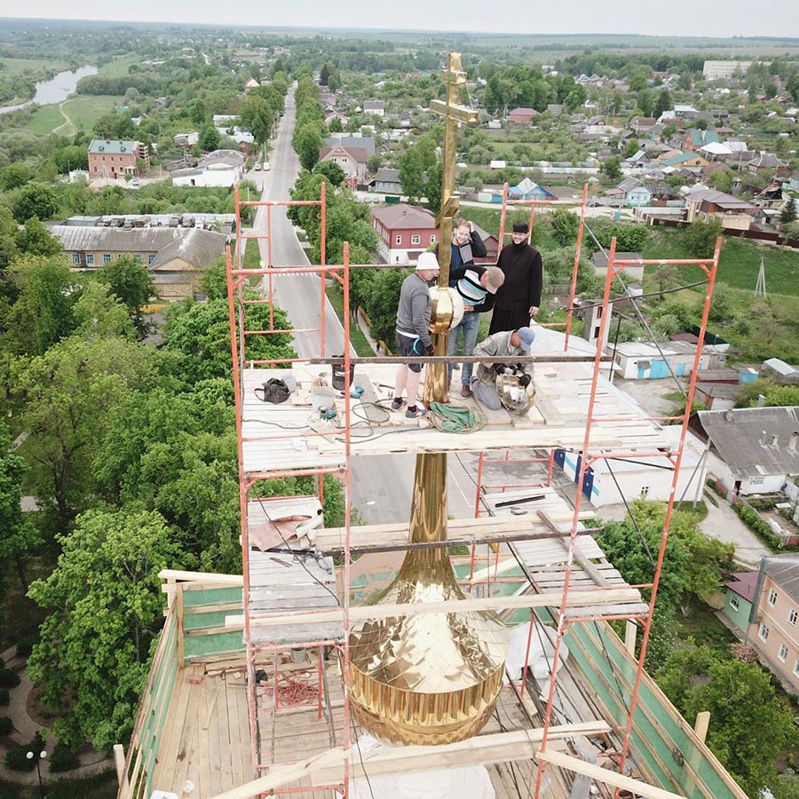 Установка шпиля с крестом на колокольне Свято-Успенского кафедрального собора г.Козельска