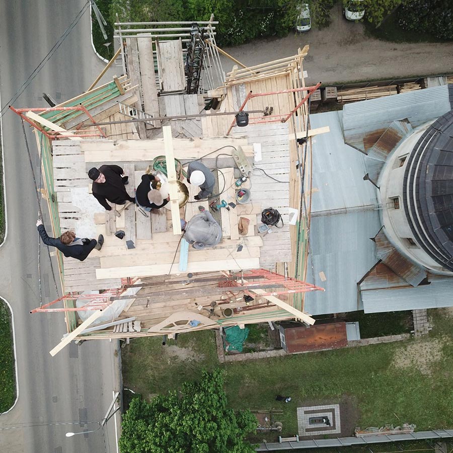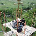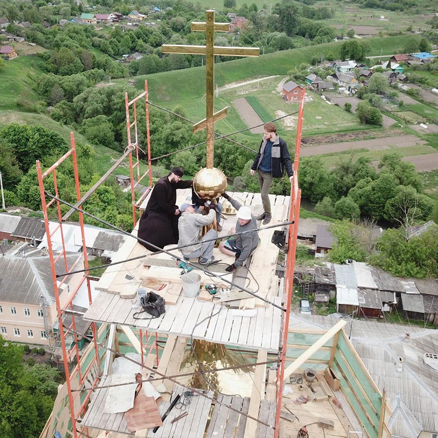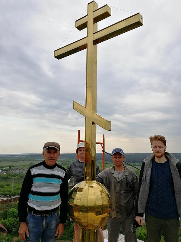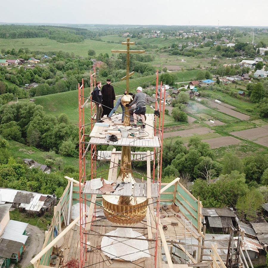 Установка шпиля с крестом на колокольне Свято-Успенского кафедрального собора г.Козельска
