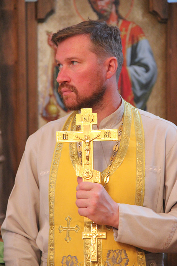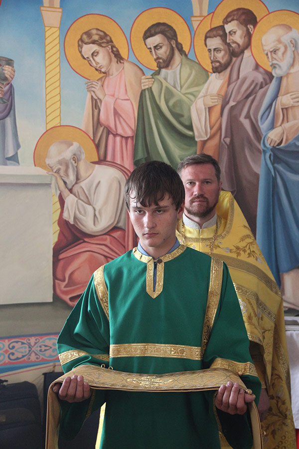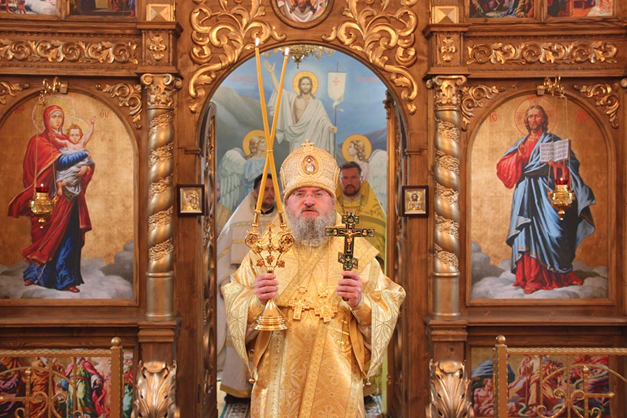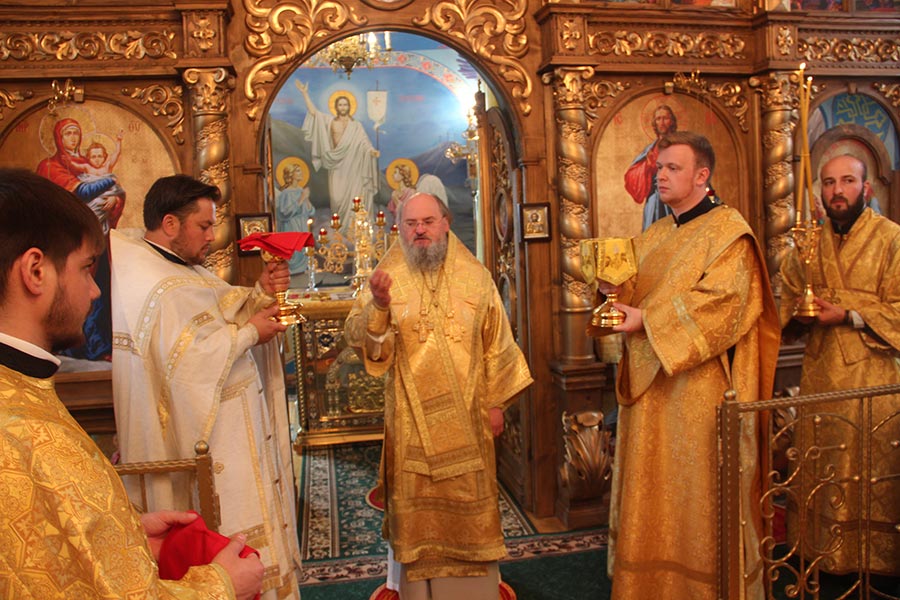Его Преосвященству сослужили: настоятель храма, благочинный округа протоиерей Александр Карпов, протоиерей Антоний Хатунцев, диакон Евгений Ковригин и диакон Евгений Васильев.