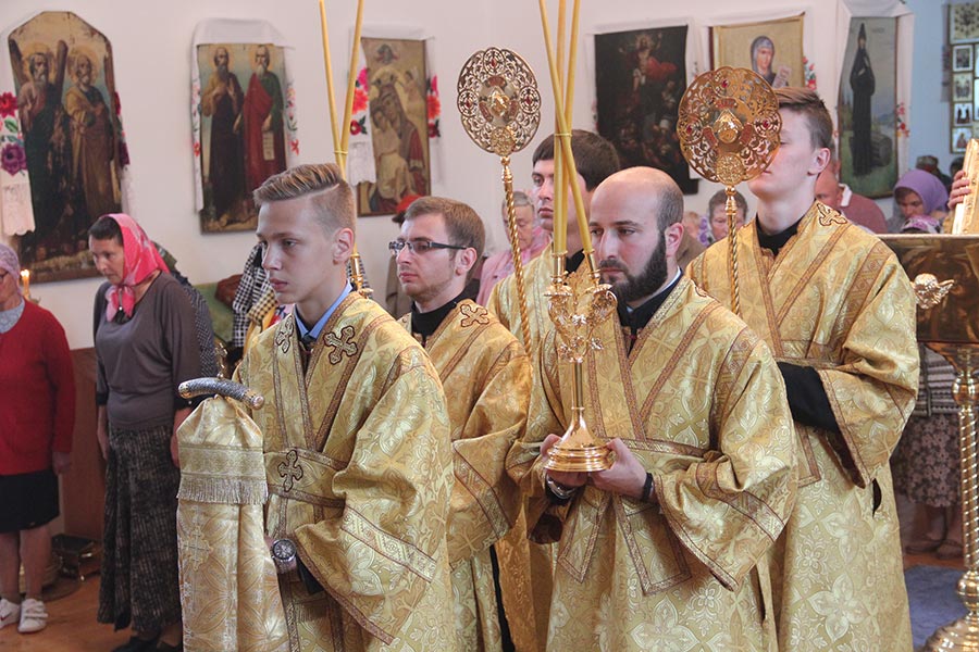 24 июня. Неделя 4-я по Пятидесятнице. Апостолов Варфоломея и Варнавы. Епископ Козельский и Людиновский Никита посетил приход Успения Пресвятой Богородицы села Хвастовичи, где совершил Божественную литургию святителя Иоанна Златоустого.