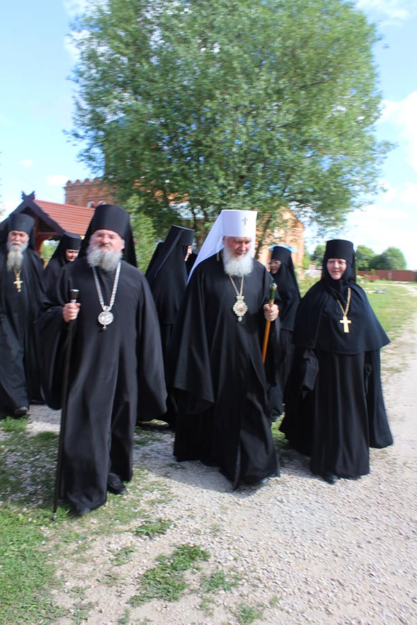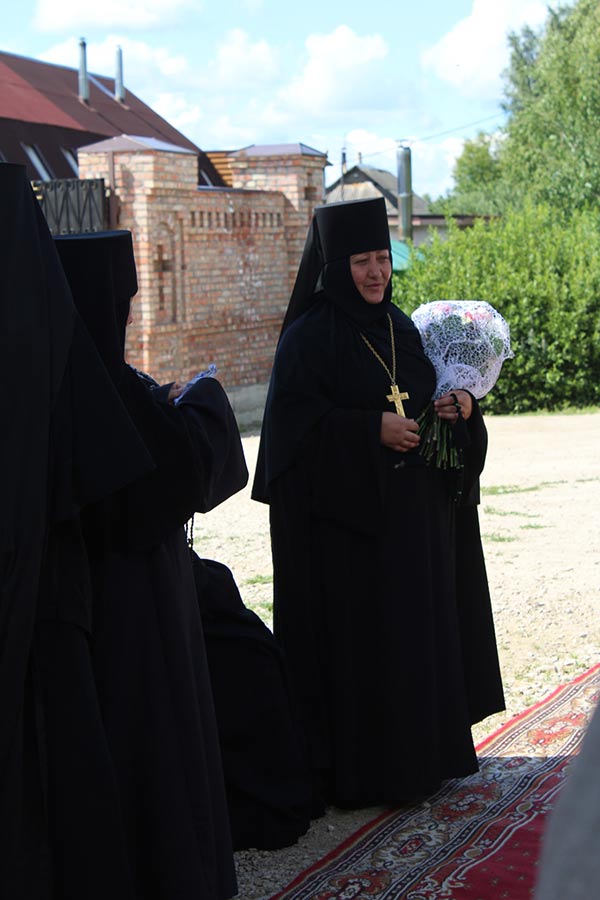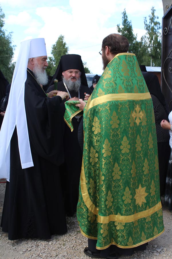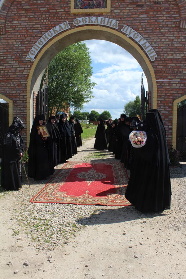 У святых врат обители Владыку Митрополита, епископа Козельского и Людиновского Никиту и духовника сестер монастыря архимандрита Антония (Гаврилова) встречали игумения Виталия (Кочетова) с сестрами.