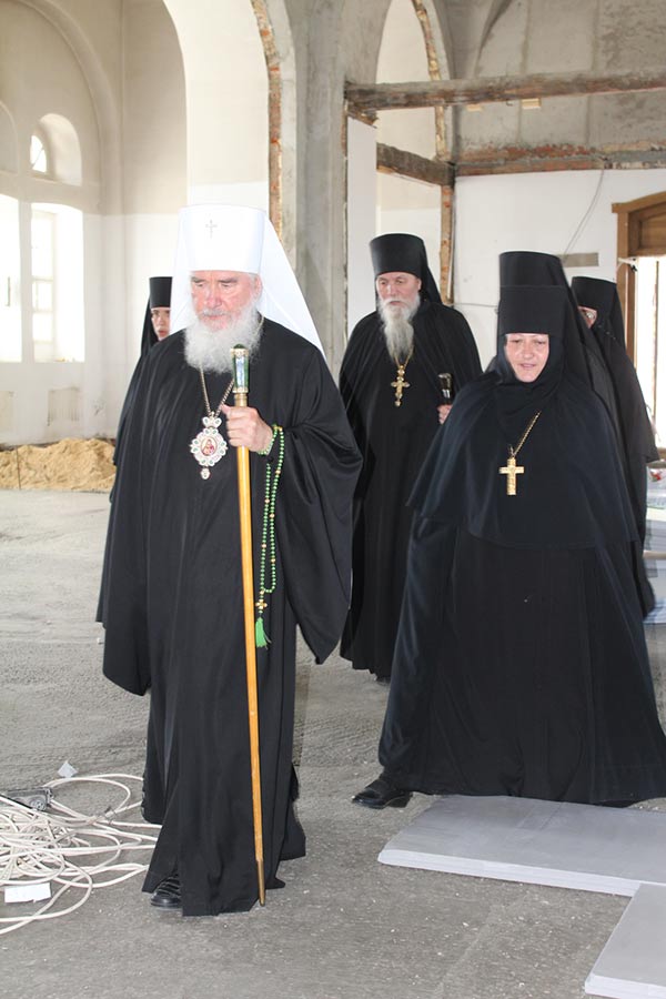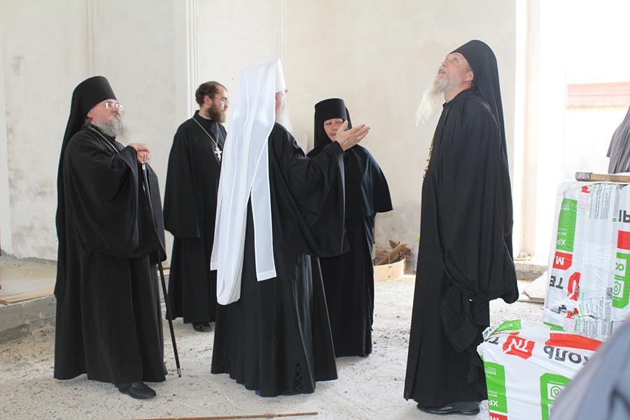 Затем матушка настоятельница познакомила гостей с ходом реставрационных работ в соборном храме Успения Пресвятой Богородицы, а также с хозяйством монастыря.