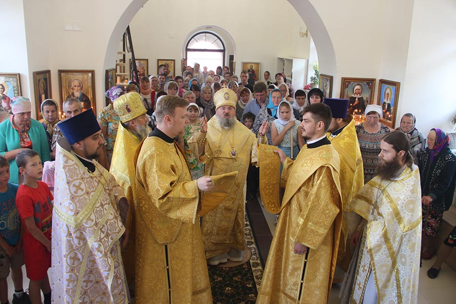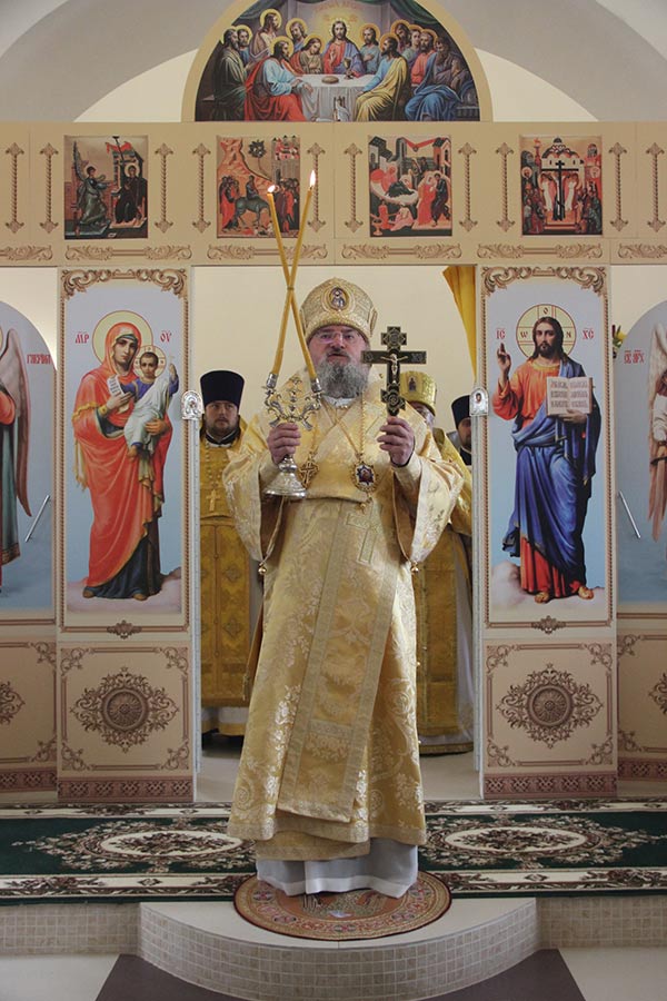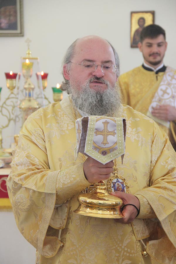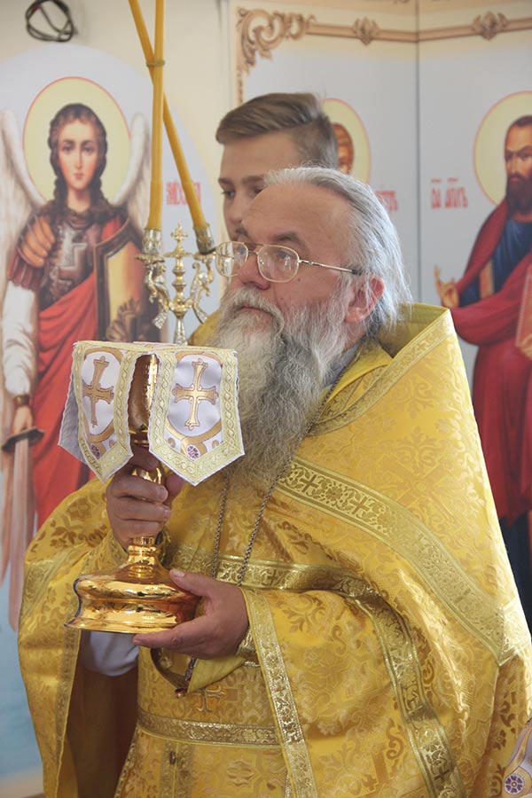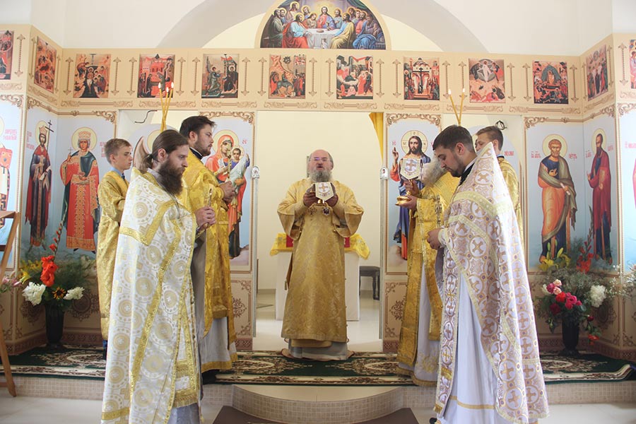 Архипастырю сослужили: протоиерей Алексий Жиганов, протоиерей Антоний Хатунцев, иерей Артемий Арутюнян, иерей Алексий Ефименков, диакон Евгений Ковригин и диакон Евгений Васильев.