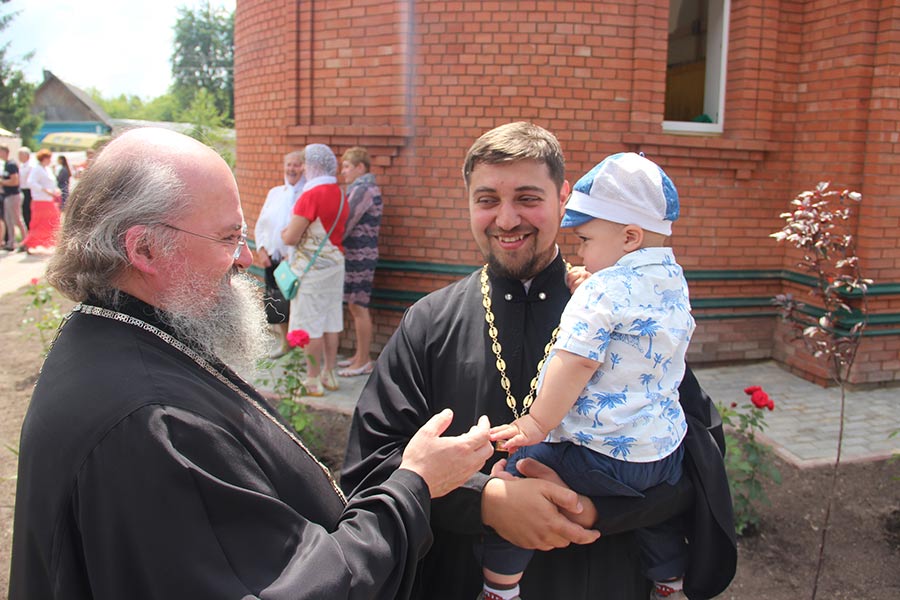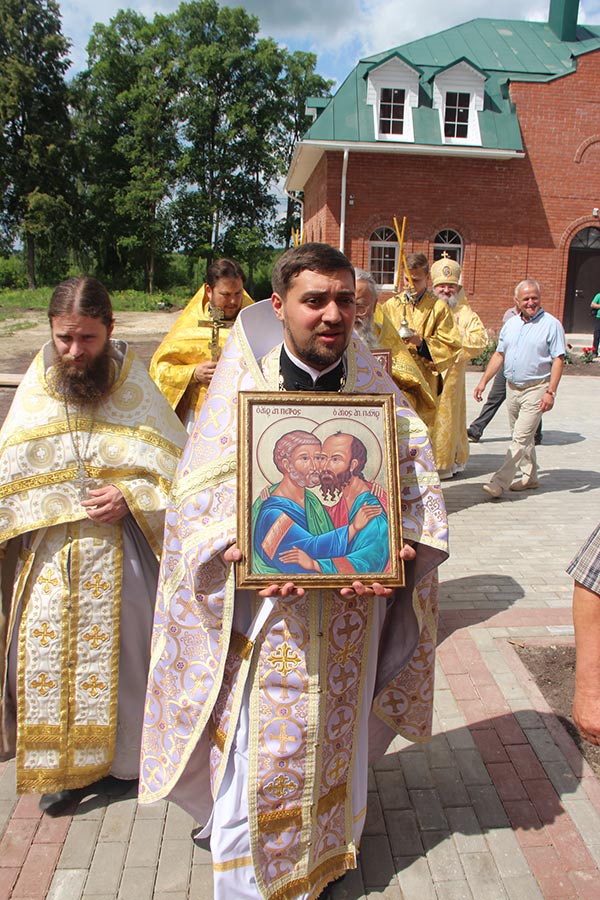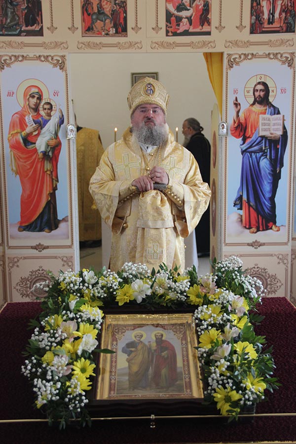 По отпусте литургии состоялся праздничный молебен и крестный ход вокруг храма в завершении которого, вознеся молитву святым первоверховным апостолом, владыка обратился к богомольцам с проповедью.