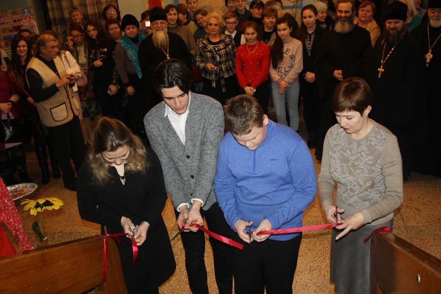 Право разрезать ленточку и открыть выставку было предоставлено учащимся, победителям муниципального этапа олимпиады по основам православной культуры.