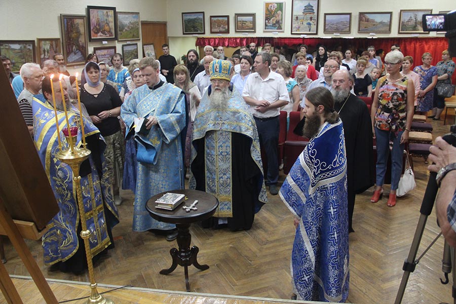 Торжественное открытие началось с молебного пения о призывании помощи Святого Духа перед началом всякого доброго дела, который совершил протоиерей Алексий Жиганов в солужении духовенства городских храмов Людинова.