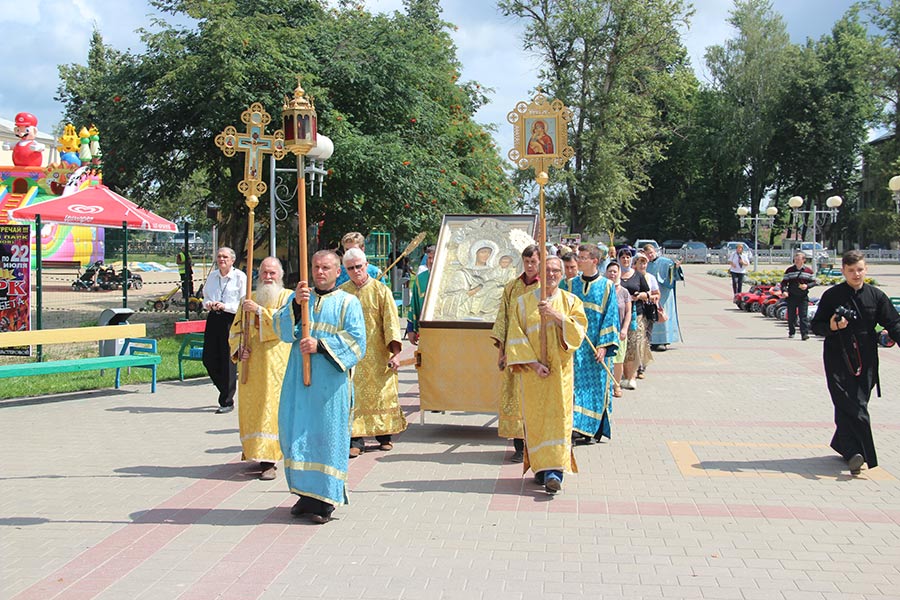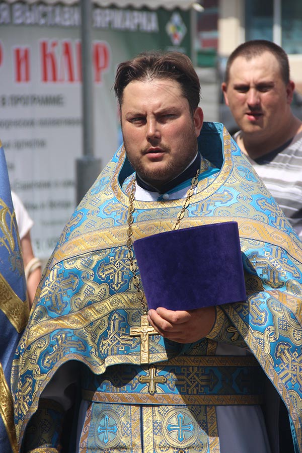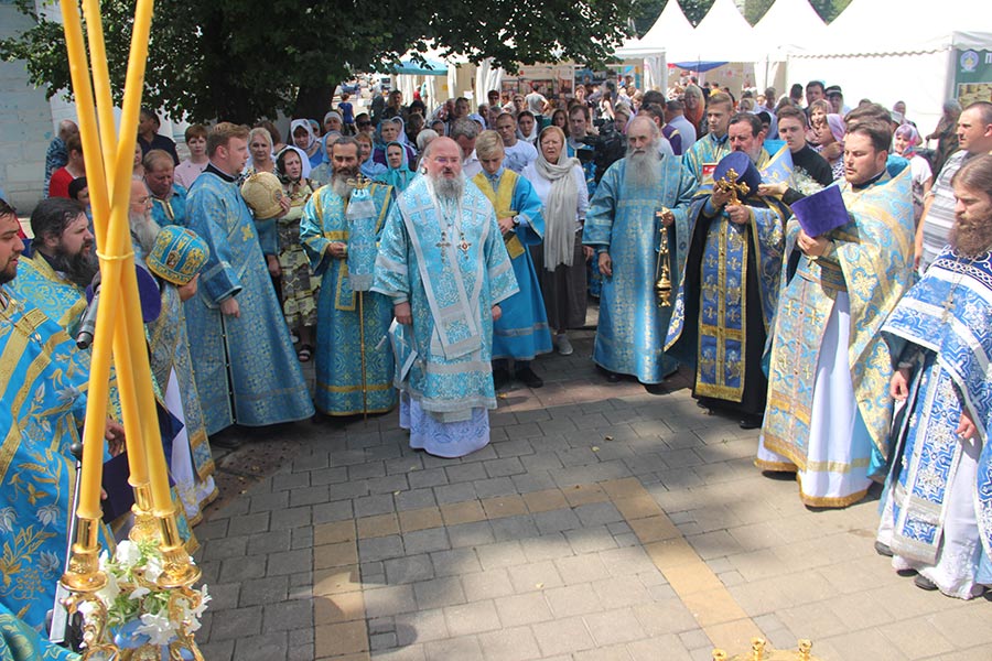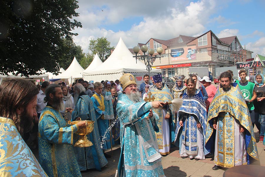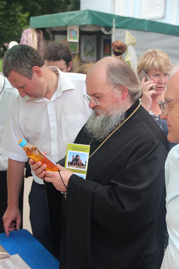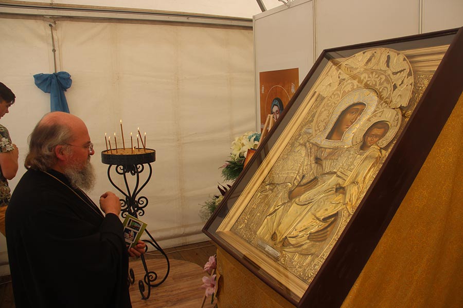 По отпусте литургии состоялся крестный ход к месту проведения ярмарки со Смоленской иконой Пресвятой Богородицы – главной святыней выставки, которая на протяжении всех выставочных дней будет находиться в специально устроенной часовне, где будут регулярно совершаться молебны и проходить беседы со священнослужителями.