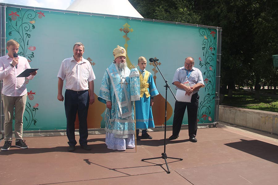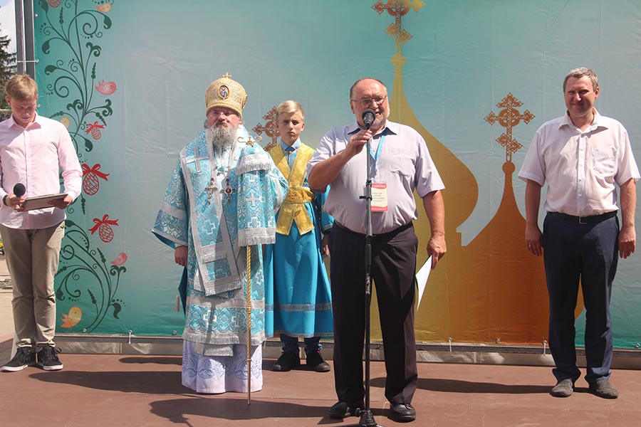 После молебна пред началом всякого доброго дела к устроителям и участникам выставки – ярмарки обратились епископ Никита, глава Людиновского района Даниил Михайлович Аганичев и генеральный директор ВК «Узорочье» Сергей Николаевич Алексеев.