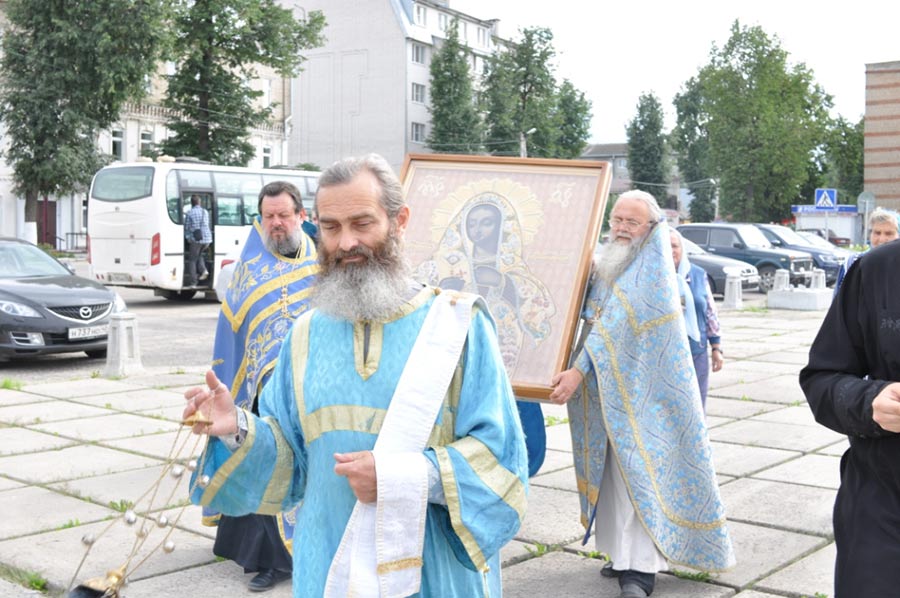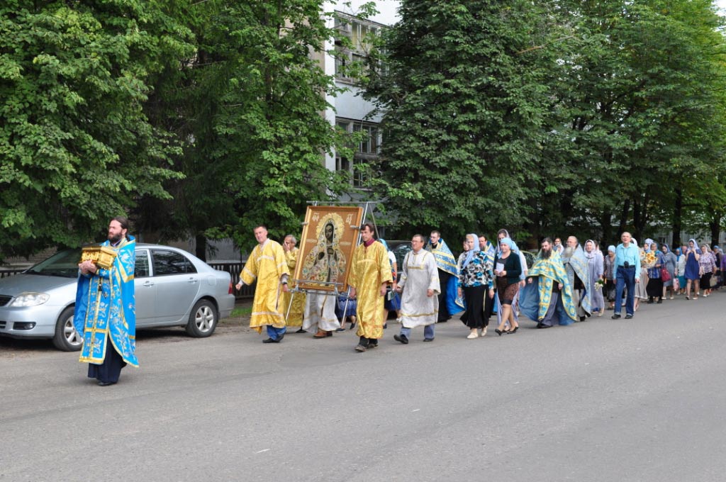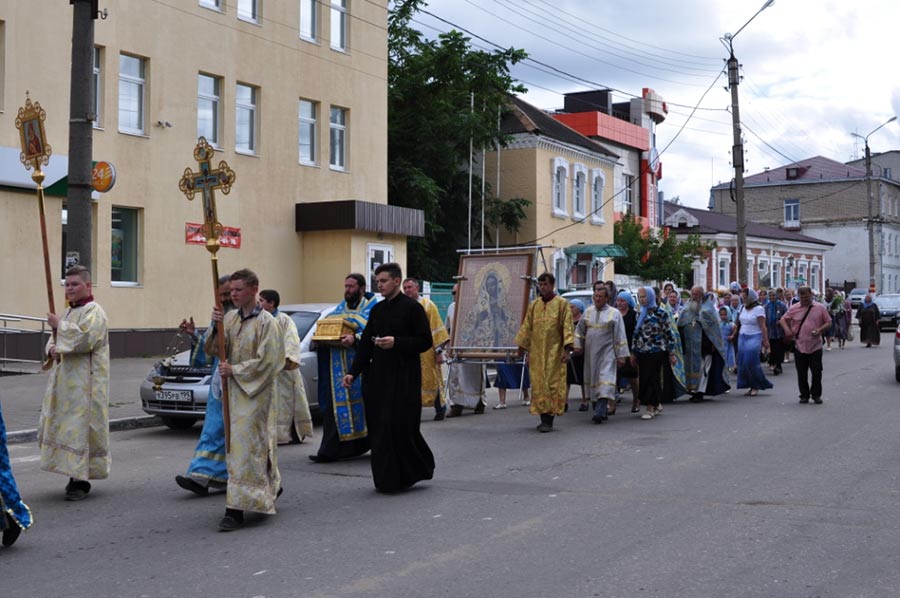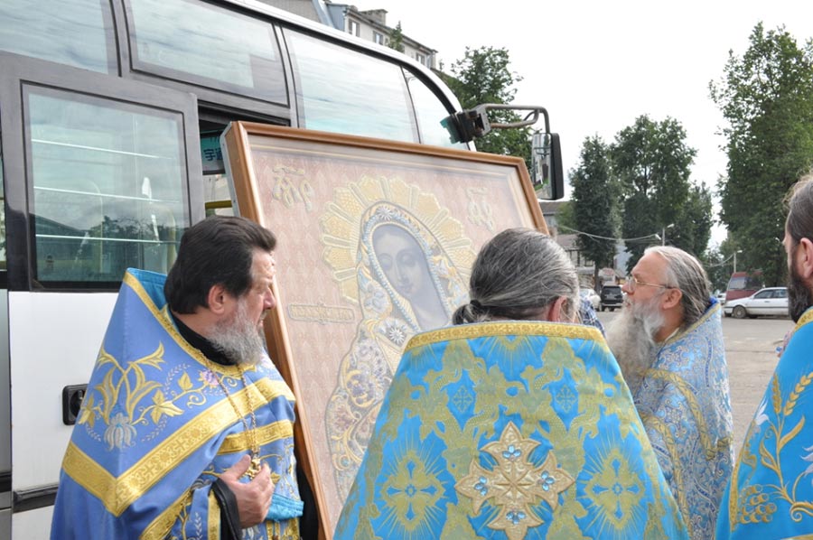 26 июля была совершена Божественная литургия, а также молебен с акафистом Пресвятой Богородице «Калужская», после чего чудотворная икона была перенесена в храм преподобного Сергия Радонежского. В этот же день жители Людинова простились со святыней. Икона была отправлена в следующий город Калужской земли- Жиздру.