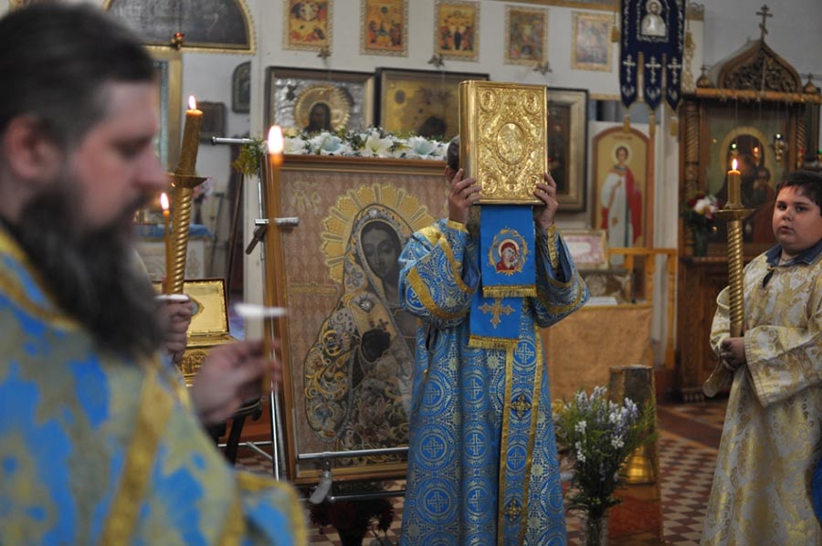 «Глухому внезапу слух даровася, ослепшему зрение открыся, разслабленному крепость во удесех его возвратися, здравие душею страждущей и бесом одержимей дадеся, люте болящей и врачми оставленней житие во здравии на многая лета продолжися; темже и мы, с любовию к иконе Твоей припадающе и прославляюще Бога, вопием Ему: Аллилуиа!!!».