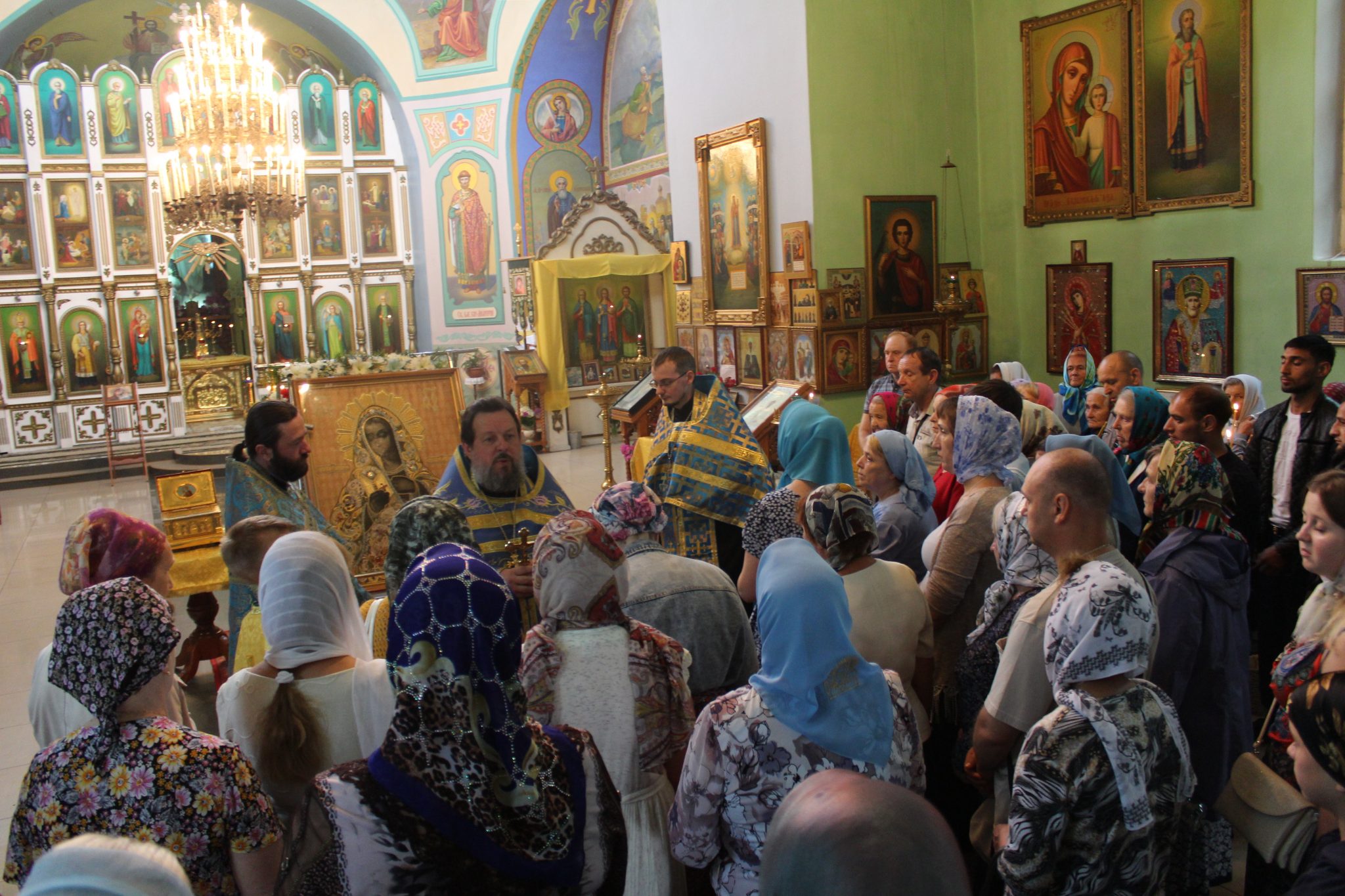 В храме, при соборном служении духовенства, благочинный 6 округа настоятель храма Преподобного Сергия Радонежского протоиерей Василий Биляк совершил молебен с акафистом Божией Матери, а затем обратился к прихожанам с проповедью.