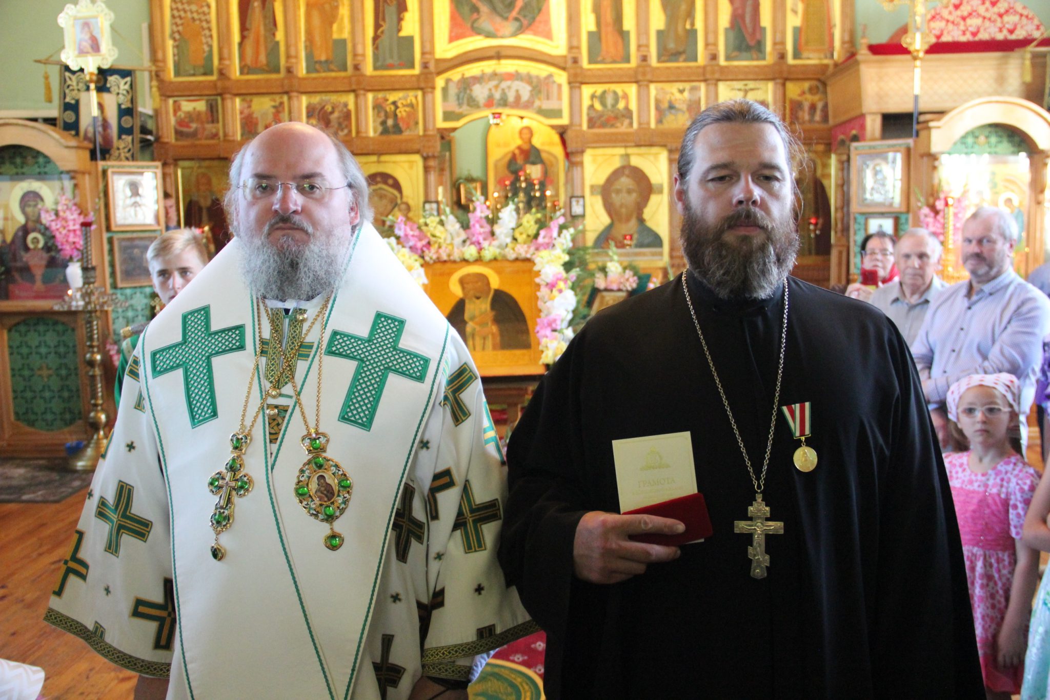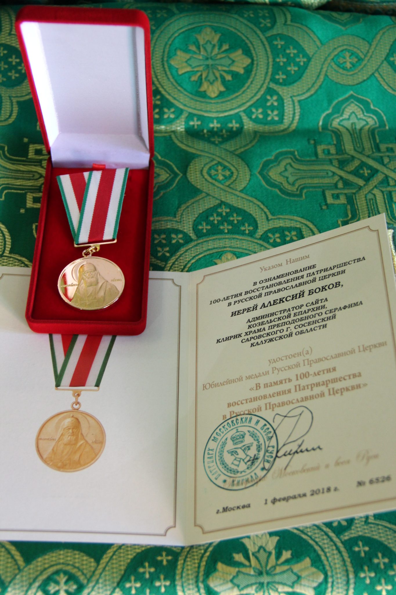 1 августа. Память преподобного Серафима Саровского. Епископ Козельский и Людиновский Никита совершил Божественную литургию в храме преподобного Серафима Саровского города Сосенского. Его Преосвященству сослужили: настоятель храма, секретарь Козельской епархии протоиерей Владимир Бахаев, игумен Михаил (Семенов), иерей Антоний Лунин, иерей Алексий Боков, диакон Евгений Ковригин и иеродиакон Виталий (Павленко). По отпусте литургии священнослужители совершили праздничный молебен преподобному Серафиму и крестный ход вокруг храма, в завершении которого, вознеся молитву Саровскому чудотворцу, владыка поздравил прихожан с праздником и произнес проповедь. Во внимание к усердным трудам во славу Церкви Христовой и в связи с сорокопятилетием со дня рождения архипастырь вручил настоятелю храма протоиерею Владимиру Бахаеву памятный наперстный крест с украшениями, а клирик храма иерей Алексей Боков, по благословению Святейшего Патриарха Кирилла, был удостоен юбилейной медали в ознаменование столетия восстановления Патриаршества в Русской Православной Церкви.