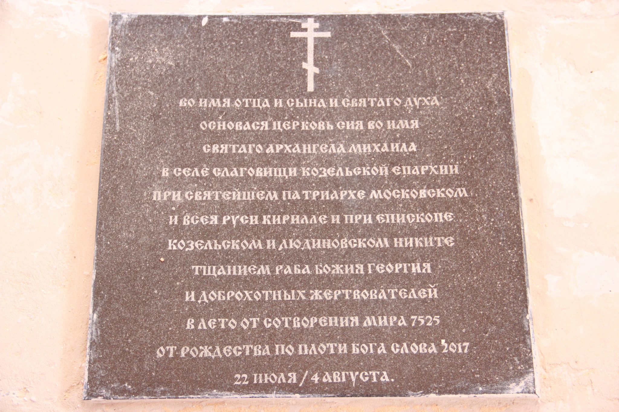 3 августа епископ Никита посетил село Слаговищи Козельского района где строится храм архистратига Божия Михаила. Диакон Тихон Худяков, курирующий строительство, и ктитор храма Георгий Коновалов, житель села на средства которого воздвигается храм, познакомили владыку с ходом строительных работ.