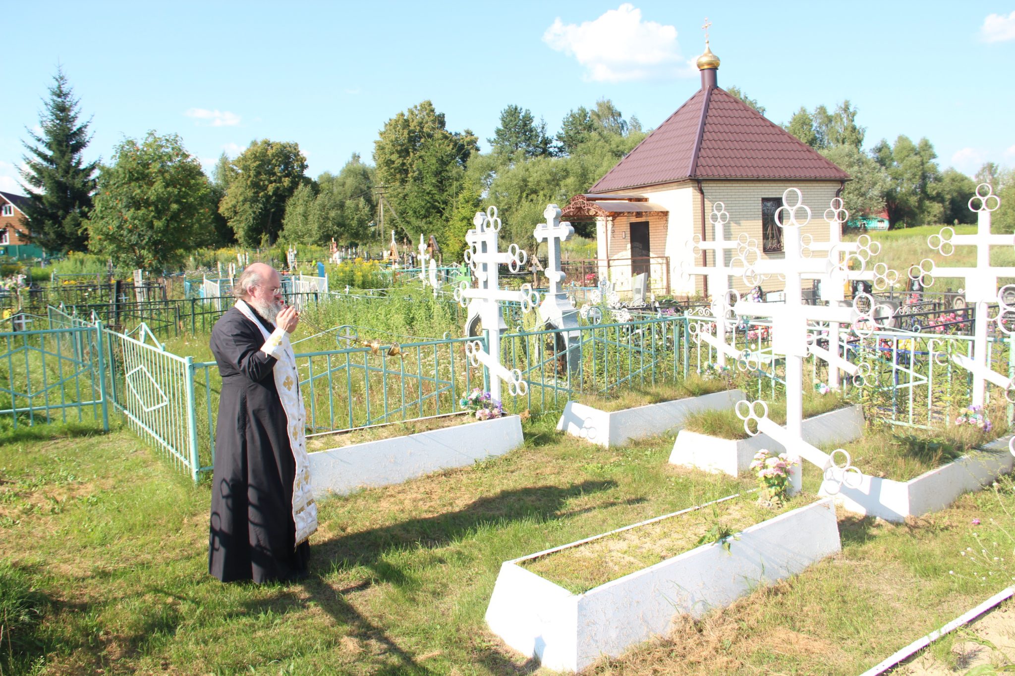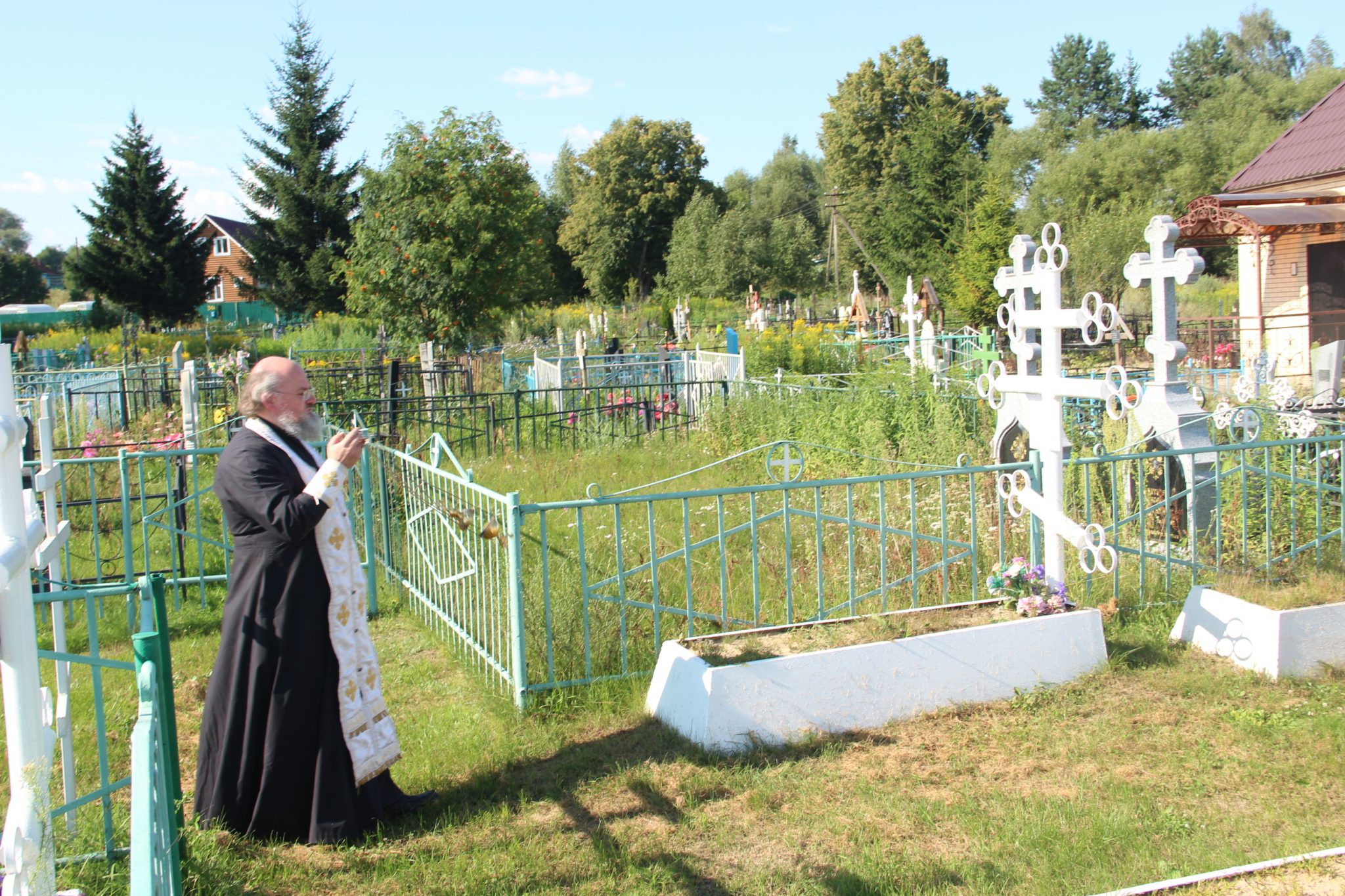 3 августа. Епископ Козельский и Людиновский Никита посетил кладбище села Нижние Прыски где совершил панихиду на могиле схиархимандрита Макария (Болотова), а затем в доме почившего пообщался с его духовными чадами.