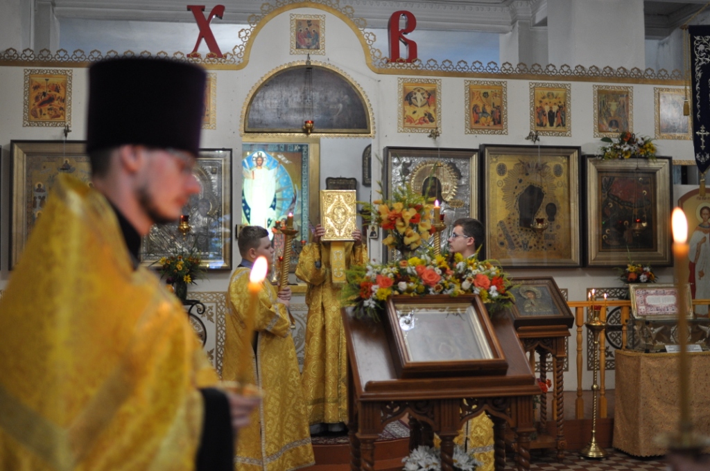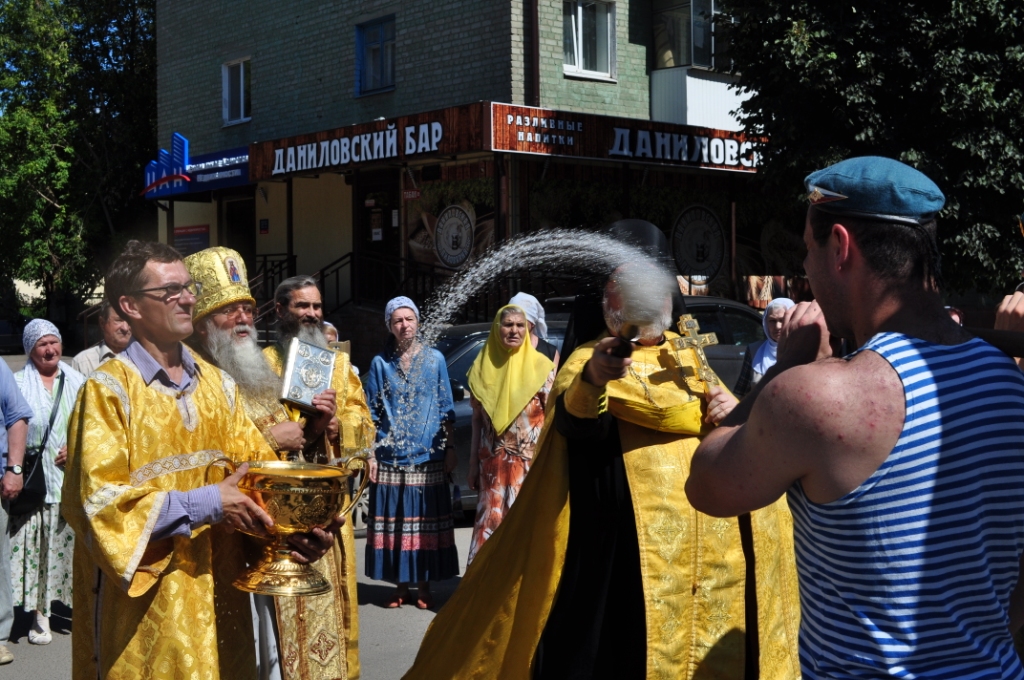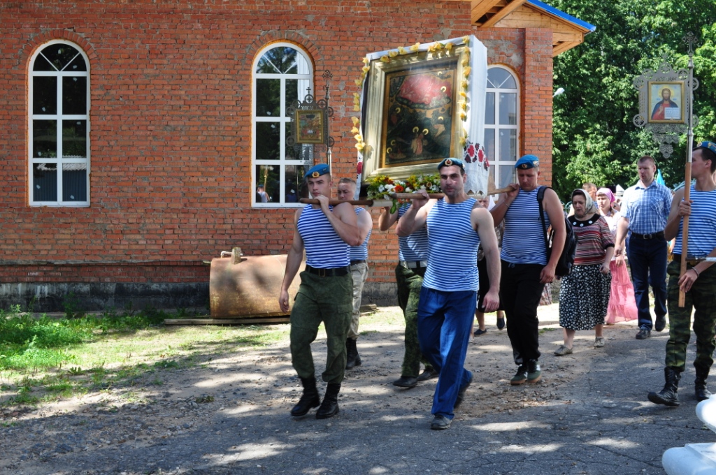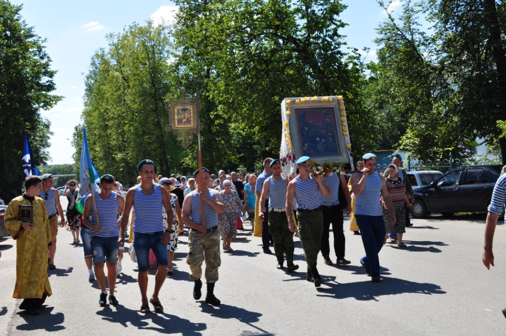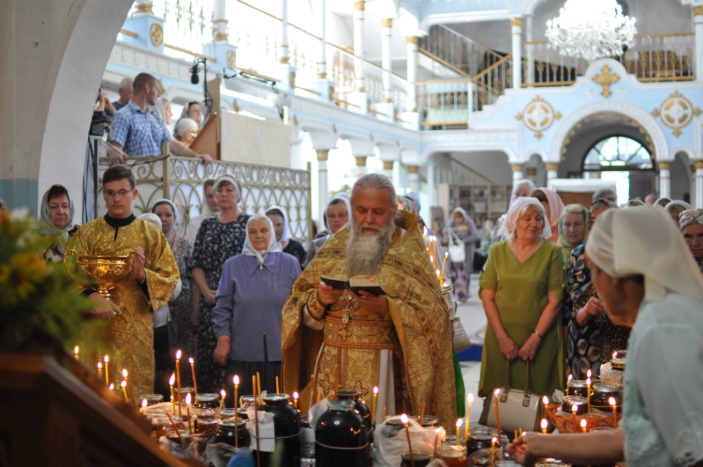 День святого славного Пророка Божия Илии являлся престольным праздником до закрытия и поругания храма, южный предел которого был освящен в честь святого. Поэтому этот день празднуется особенно торжественно и почитается престольным и по ныне. В Казанском соборе города Людиново состоялись праздничные богослужения: накануне совершено всенощное бдение с литией, в день праздника – водосвятный молебен с акафистом пророку Илии и Божественная литургия. Богослужения совершил настоятель протоиерей Алексий Жиганов в сослужении иеромонаха Василия (Лукашова) и клириков храма. По окончании Литургии, по местному обычаю, состоялось освящение мёда нового урожая. После чего настоятель поздравил отца Василия с юбилеем, а прихожан с именинами. Наш народ всегда с молитвой обращался к Пророку Илии в случае голода или ненастья. При этом люди обходили с Крестным ходом и молебным пением свои поля и селения. Крестным ходом и богослужением отмечался и по сей день празднуется во многих храмах день пророка Божия Илии. Также это день воздушно-десантных войск. И десантники, и летчики считают пророка Илию своим верным покровителем. Традиционно от Казанского собора в этот день было совершено молебное пение и крестный ход по улицам города с участием десантников. У Поклонного креста на площади Победы протоиерей Алексий Жиганов прочитал молитву о российском воинстве. Торжества закончились чаепитием с освященным мёдом нового урожая.