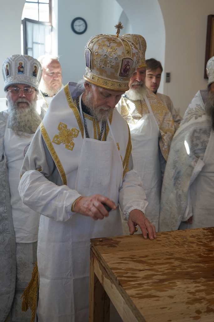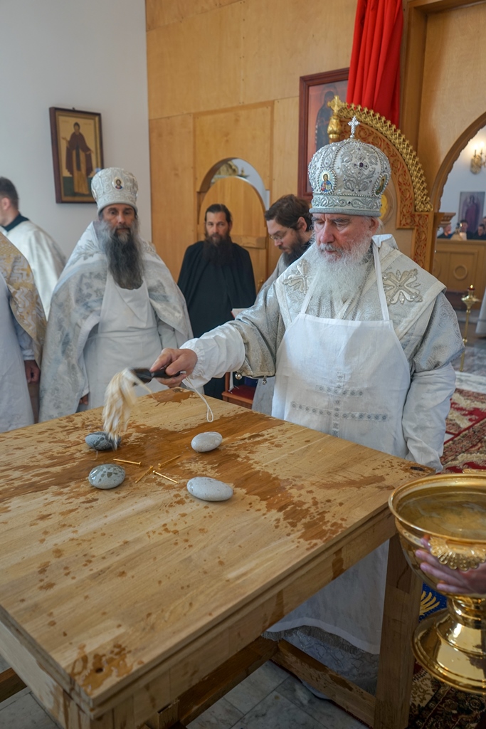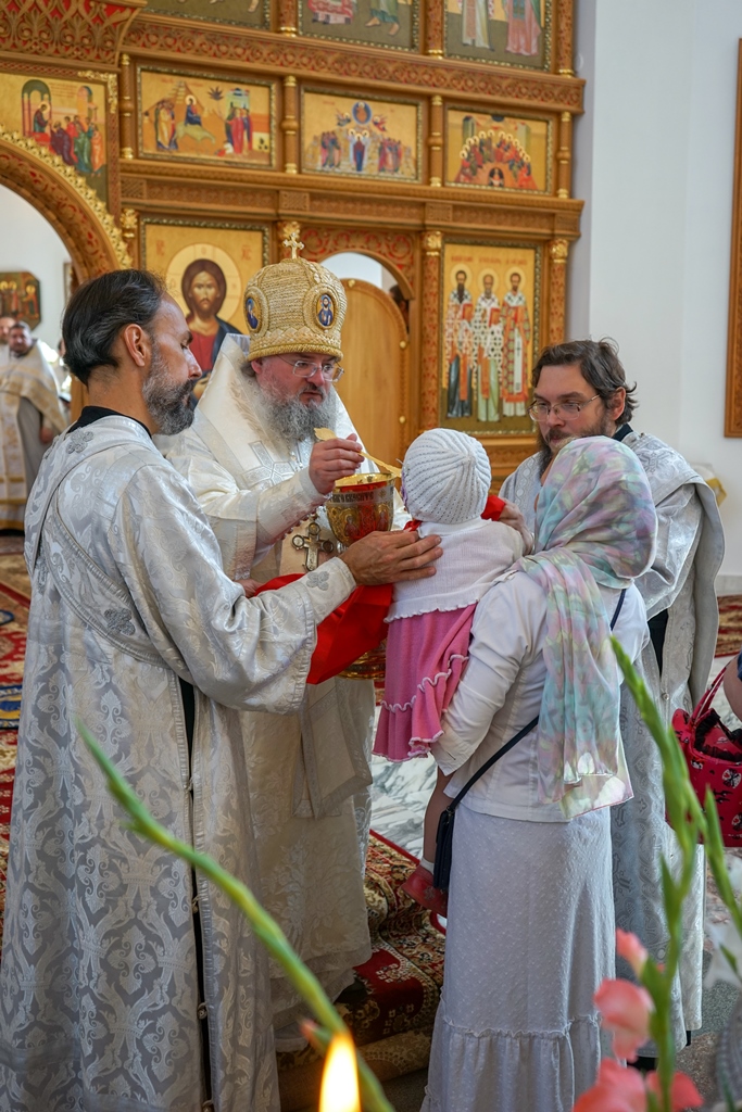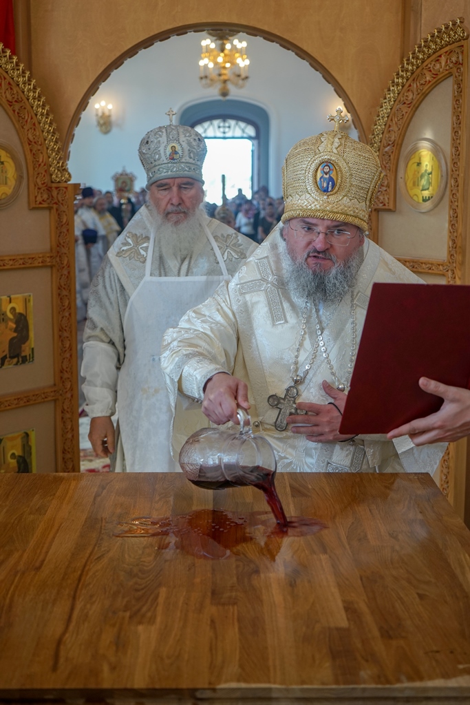 Митрополит Калужский и Боровский Климент в сослужении архиепископа Песоченского и Юхновского Максимилиана и епископа Козельского и Людиновского Никиты совершил Божественную литургию и Великое освящение храма в честь Трех Святителей: Василия Великого, Григория Богослова и Иоанна Златоустого.