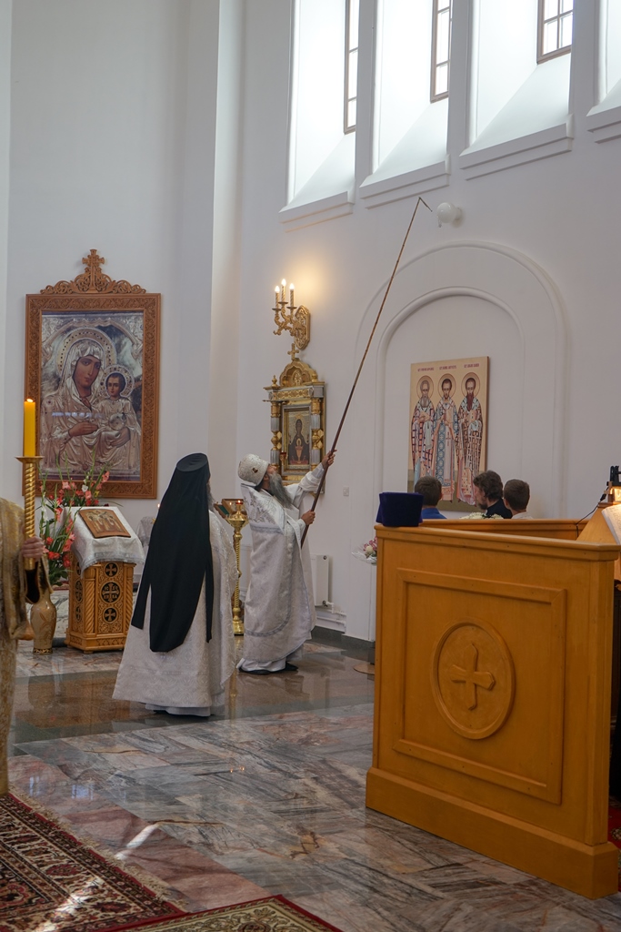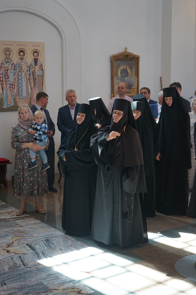 За богослужением молились: игуменья Николая (Ильина) – настоятельница Свято-Никольского Черноостровского женского монастыря г. Малоярославца, игуменья Анастасия (Мордмилович) – настоятельница Спасо-Воротынского женского монастыря, игуменья Феофила (Лепешинская) – настоятельница Свято-Рождественской девичьей пустыни, игумения Виталия (Кочетова) — настоятельница женского монастыря Успенская Феклина Пустынь Козельской епархии, игуменья Параскева (Ляхова) — настоятельница женского монастыря в честь Калужской иконы Божией Матери в г. Калуга,, многочисленные гости и паломники.