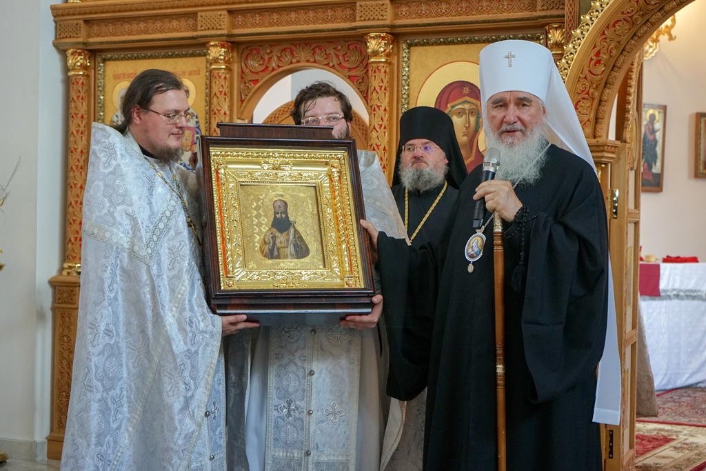 По окончании Литургии, от лица архиереев и духовенства Калужской митрополии, Главу Калужской митрополии поздравил архиепископ Песоченский и Юхновский Максимилиан. Архиепископ Максимилиан пожелал Калужскому архипастырю благословенной помощи Божией в архиерейском служении и от клира и мирян Калужской митрополии вручил памятный подарок.
